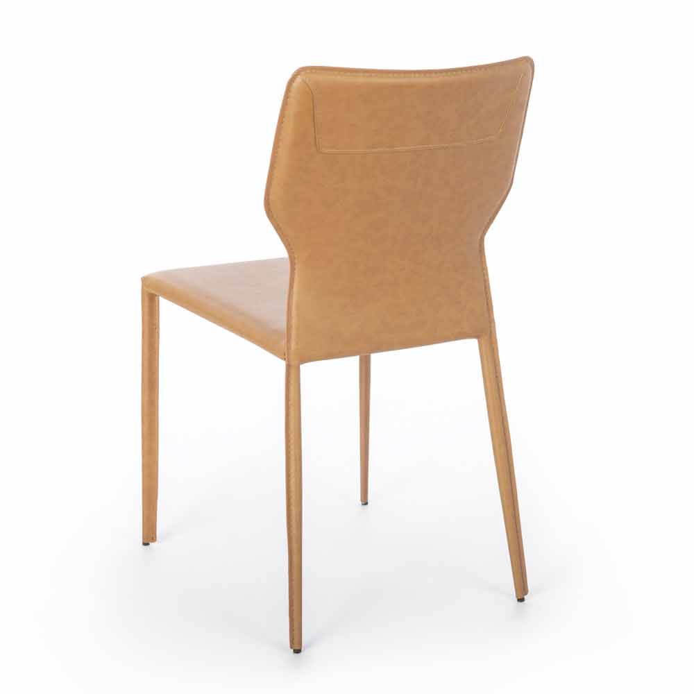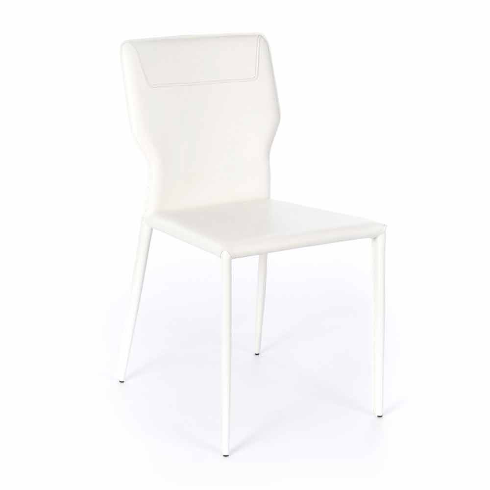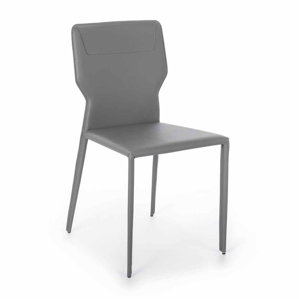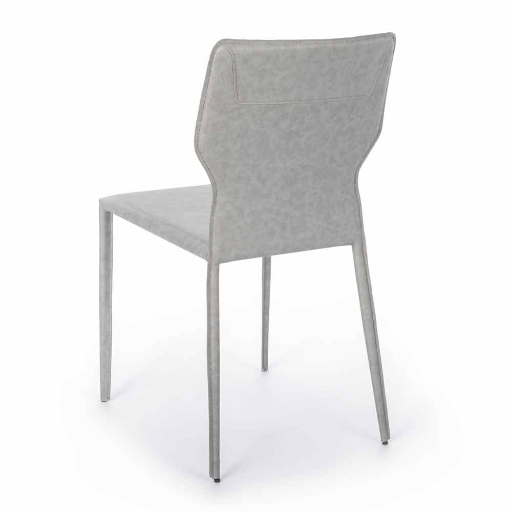 Dieser Stuhl stellt die perfekte Kombination aus Design und Funktionalität dar, macht ihn bequem und von großer visueller Wirkung. Die Struktur besteht aus Metall und ist dann vollständig mit Kunstleder überzogen. Dieses Material verleiht Eleganz und Stil zusammen mit der besonderen Form des Rückens, wodurch ein einzigartiges Endprodukt dieser Art entsteht, das sich ideal für Esszimmer oder Küchen mit einem raffinierte Atmosphäre. und edel.