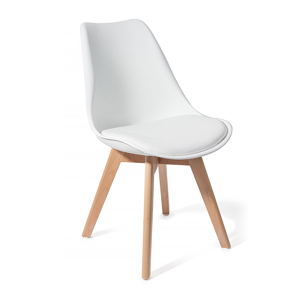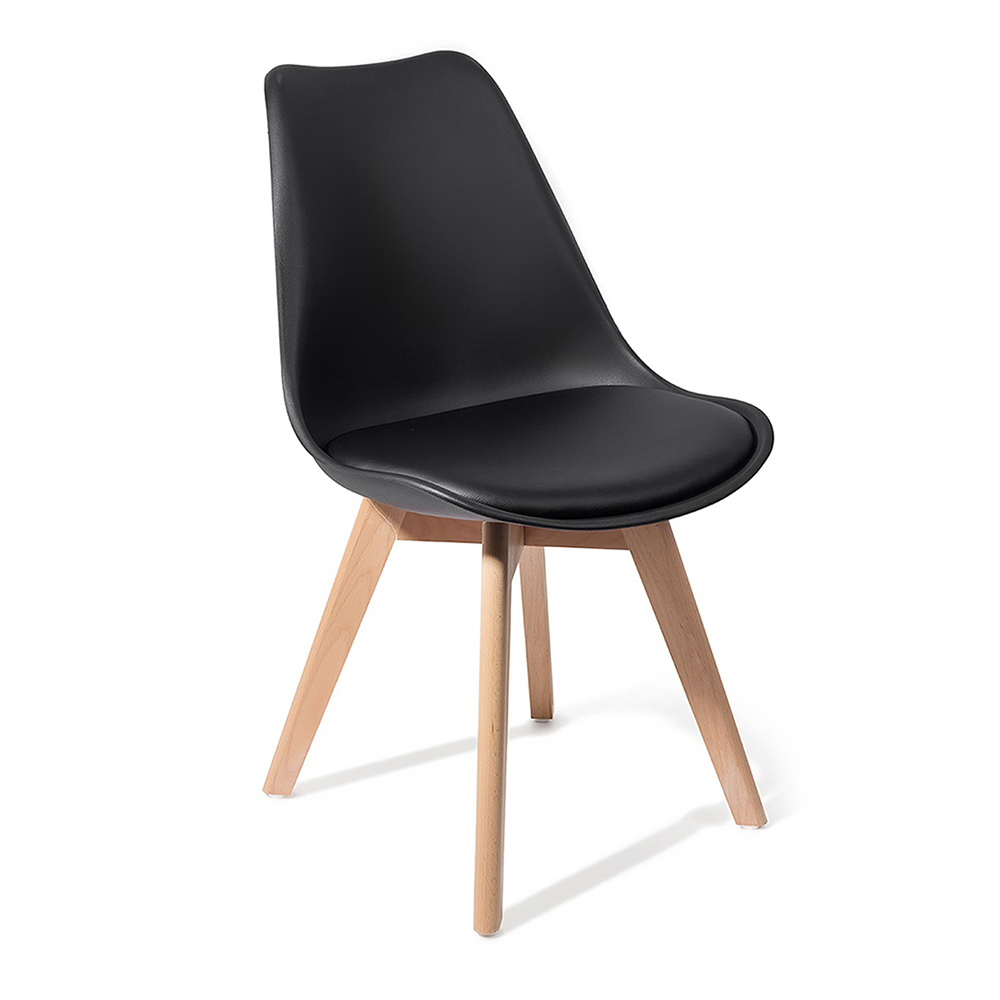 Esszimmerstuhl aus Kunstleder, Polypropylen und Massivholz, 4 Stück.
