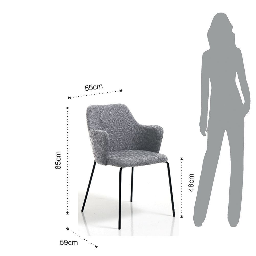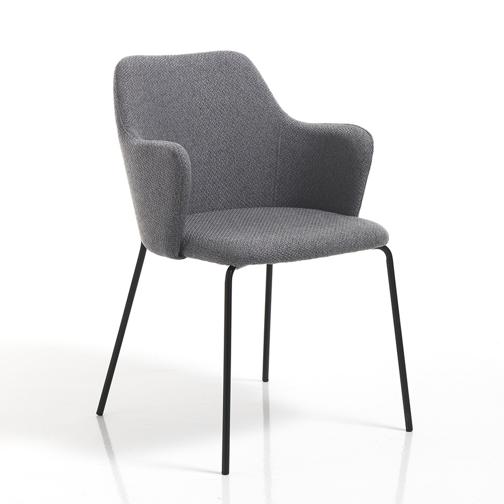 Esszimmerstuhl aus Stoff und schwarz lackiertem Metall, 2 Stück.