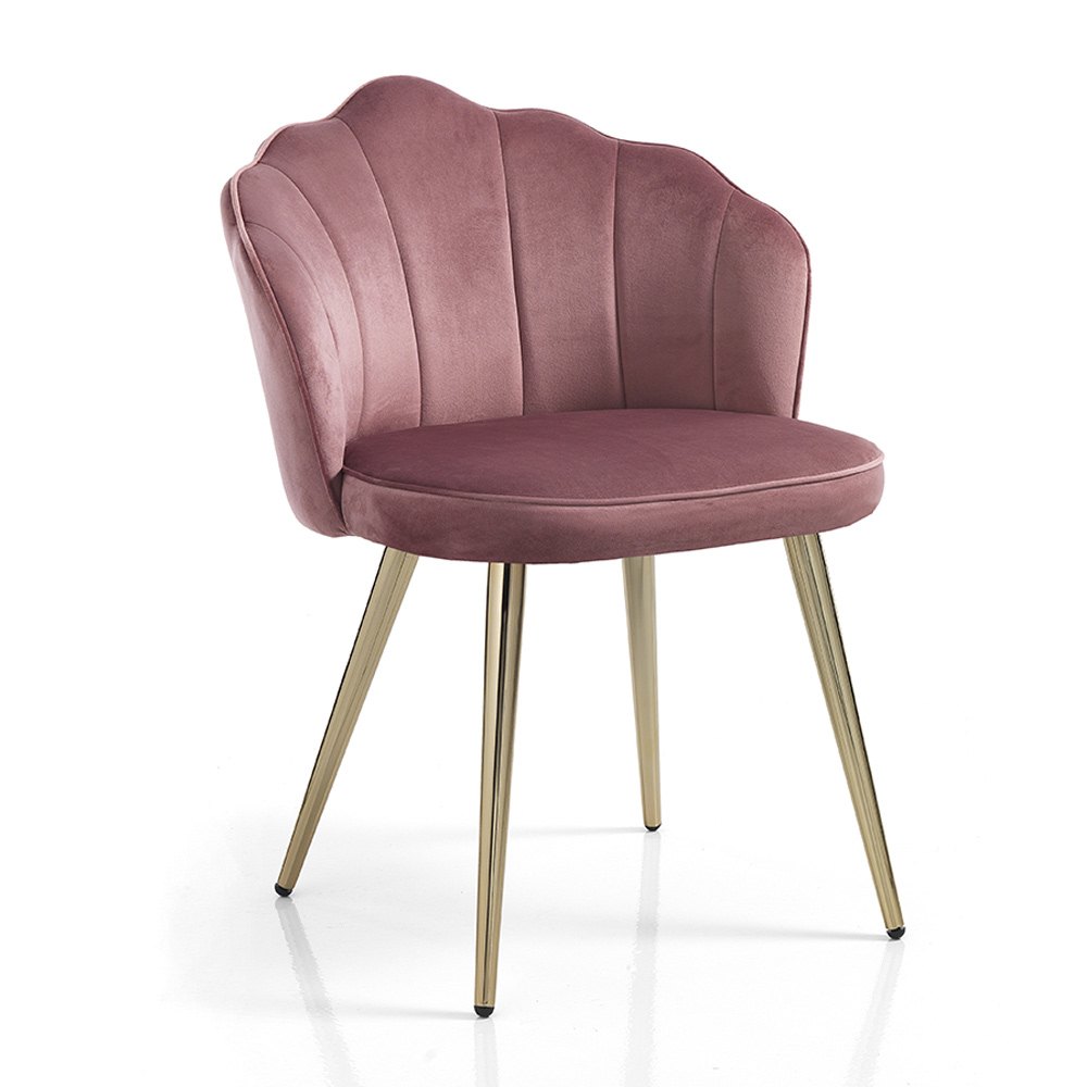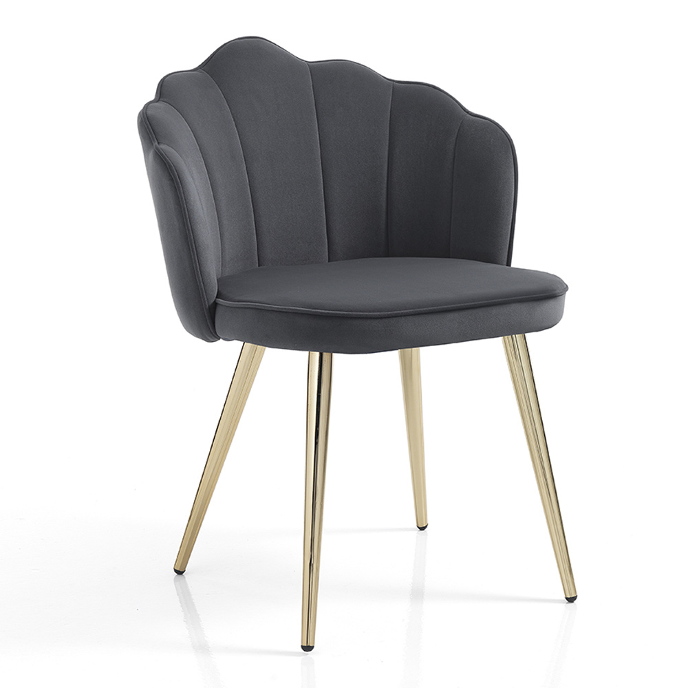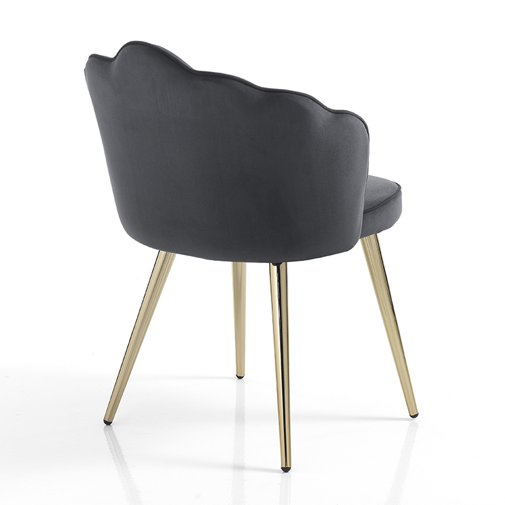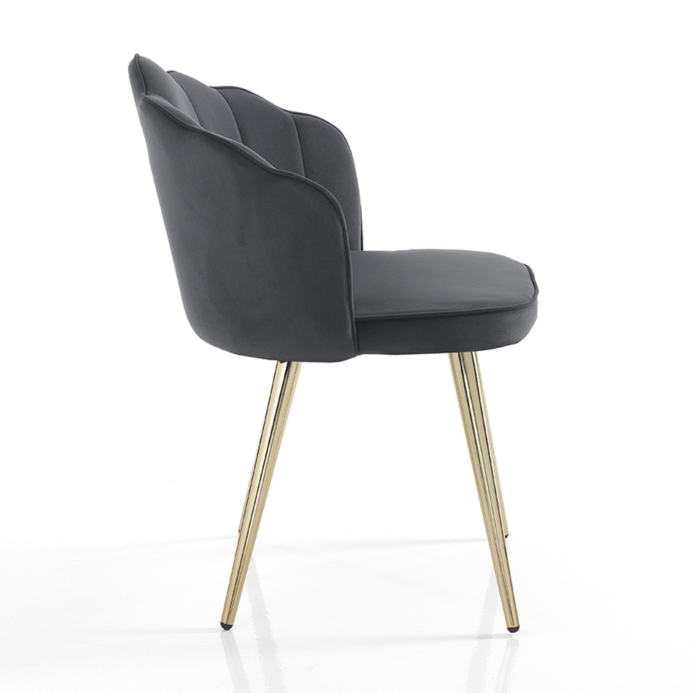 Esszimmerstuhl aus Stoff mit Samteffekt und goldglänzendem Metall, 4 Stück.