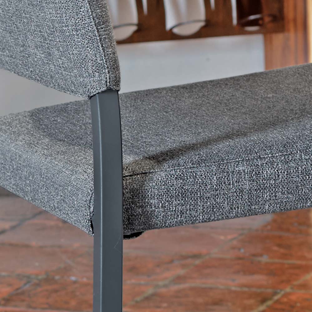 Komplett in Italien hergestellter Esszimmerstuhl mit mattanthrazit lackierter Struktur , quadratischem Bein 20x20 mm, Sitz und Rückenlehne mit grauem , antibakteriellem, wasserabweisendem Stoff bezogen.