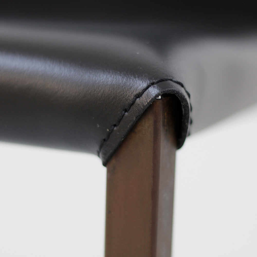 Wohnzimmerstuhl mit Cortenstruktur und schwarzem Ledersitz, perfekt für zu Hause und geeignet für den Objektbereich. Dieses Einrichtungsset ist eine perfekte Idee für alle, die dem Raum eine besondere und moderne Note verleihen möchten, ohne auf die