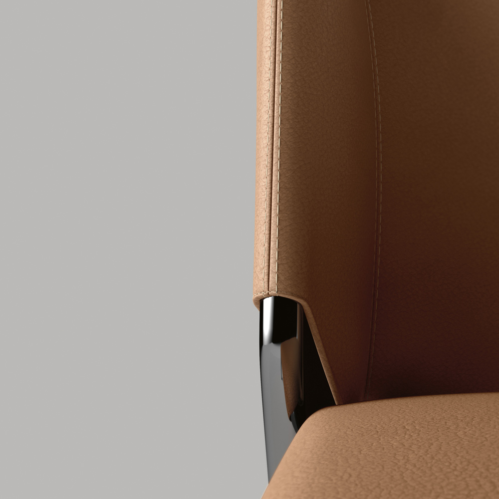 Esszimmerstuhl mit 20 mm gebogener Metallstabstruktur und ledergepolsterter Sitzfläche und Rückenlehne, vollständig in Italien hergestellt . Geprägt von einem zeitgenössischen Stil , erweist sich dieser Stuhl als perfektes Ergebnis der Begegnung zwischen technologischer Innovation und Handwerkskunst . Die fein gearbeitete Polsterung mit Außennähten erfüllt sowohl eine technische als auch eine ästhetische Funktion und unterstreicht die Eleganz des Produkts und die besondere Liebe zum Detail bei seiner Umsetzung. Dank des zeitlosen Designs und des Sitzkomforts ist er ideal im Wohnbereich, aber auch im Objektbereich, erweist sich als besonders vielseitig und bietet einen komfortablen und einladenden Raum, um sich einhüllen zu lassen, um die Momente in vollen Zügen zu genießen Entspannung gewidmet.