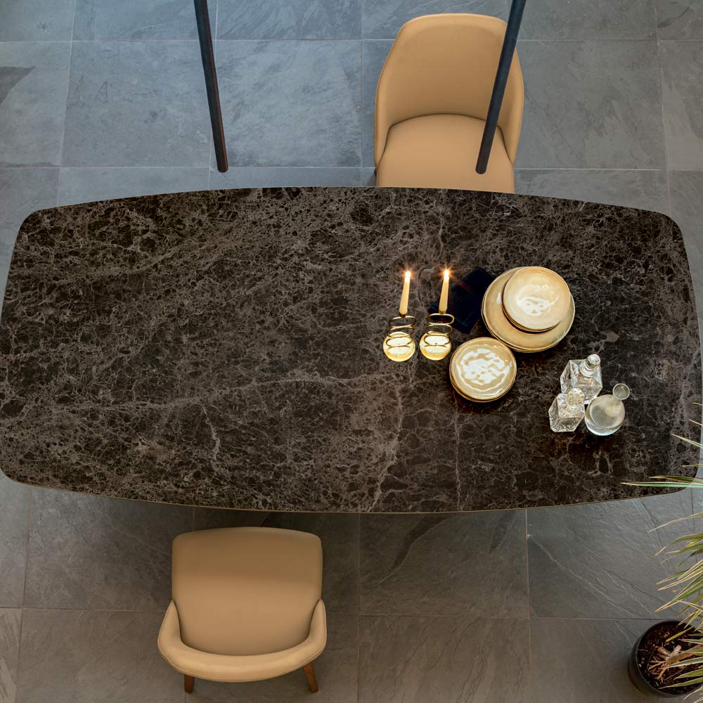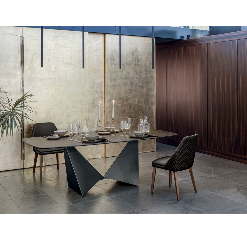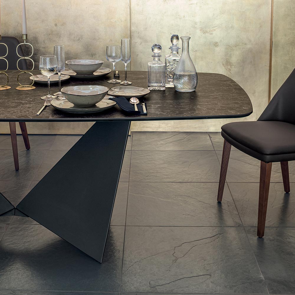 Esstisch mit Metallgestell und matter Keramikplatte in verschiedenen Ausführungen made in Italy.