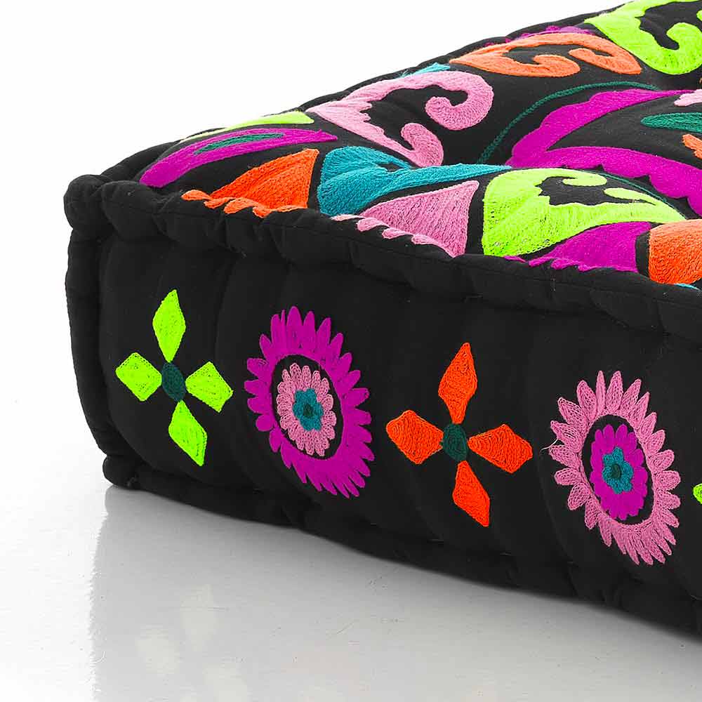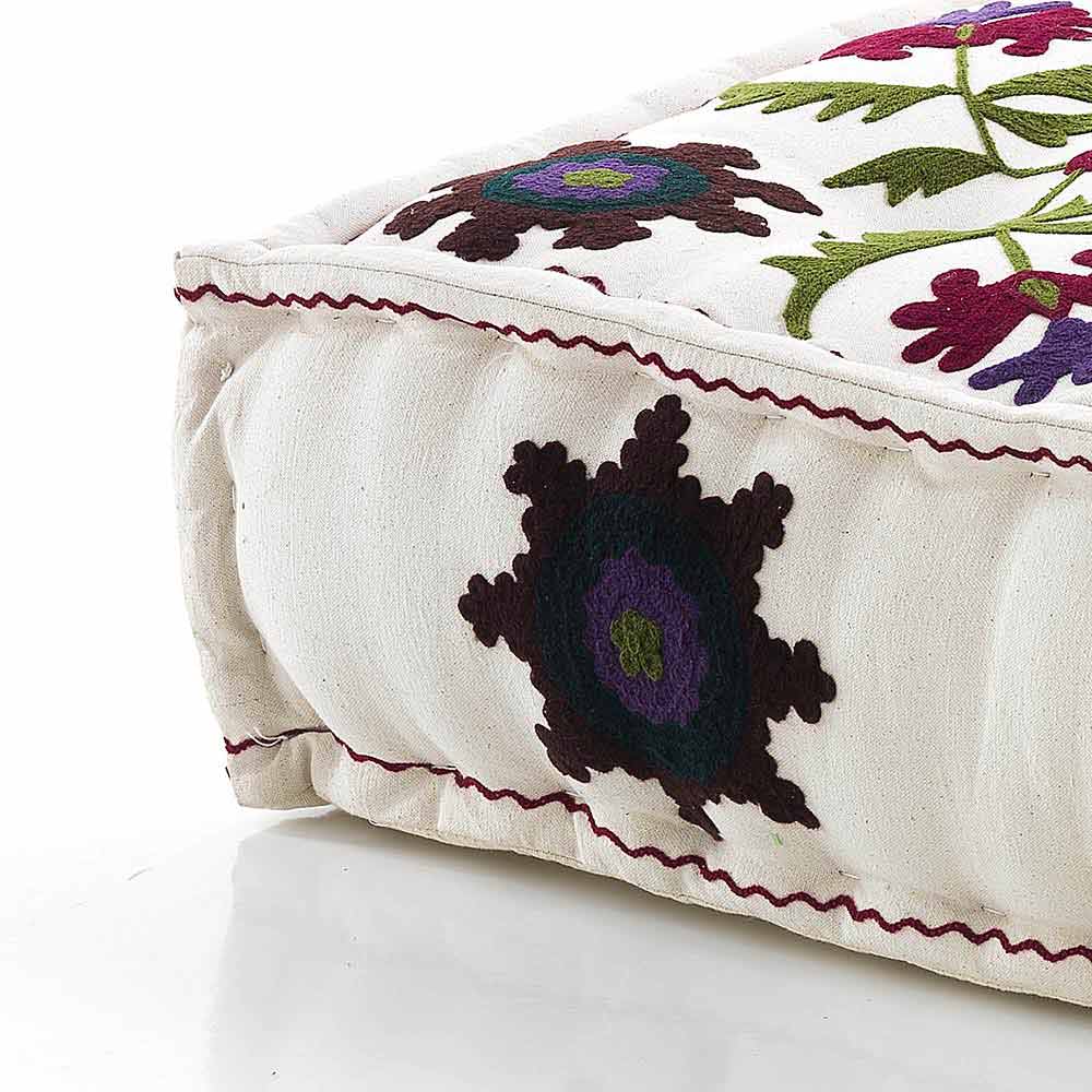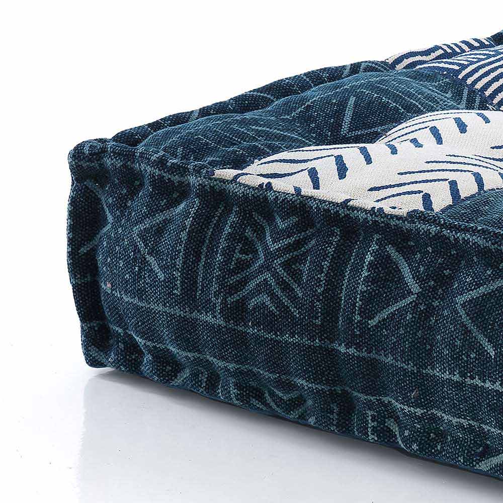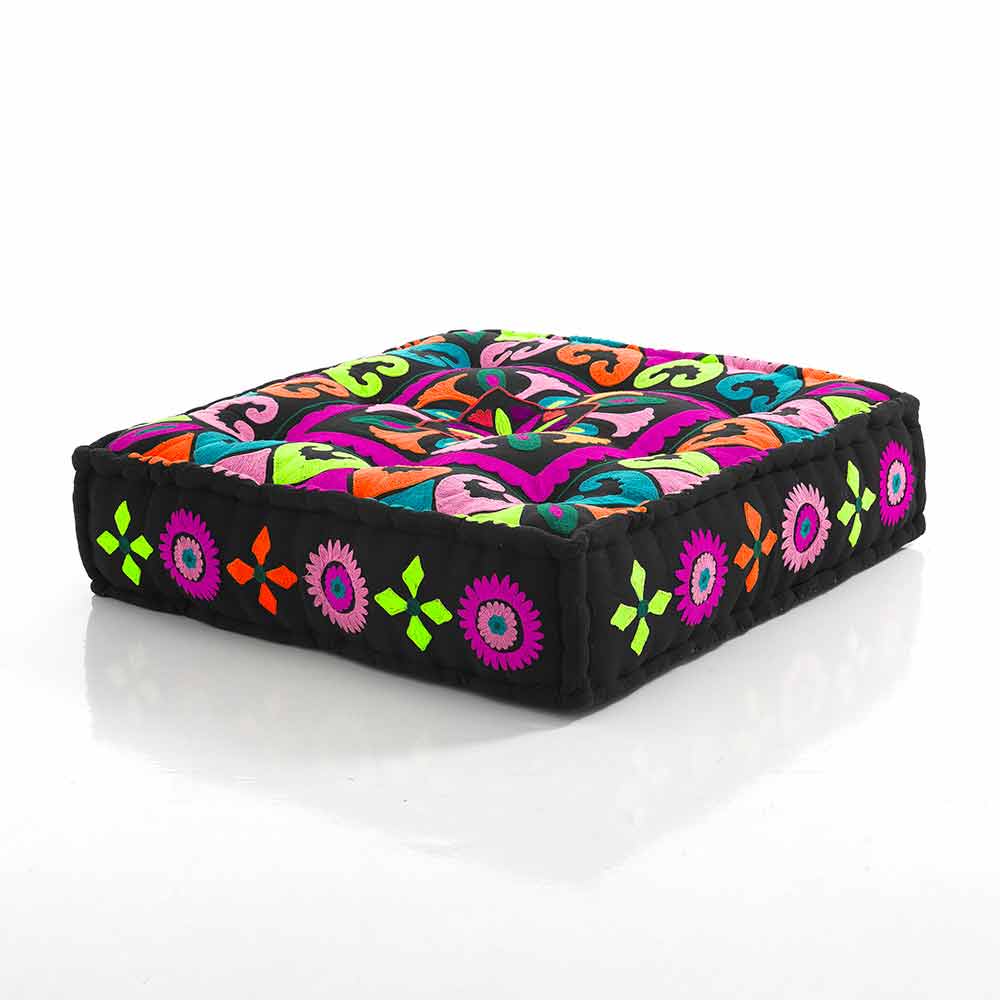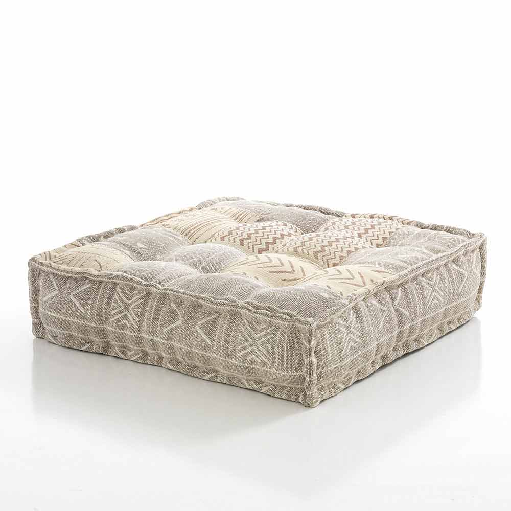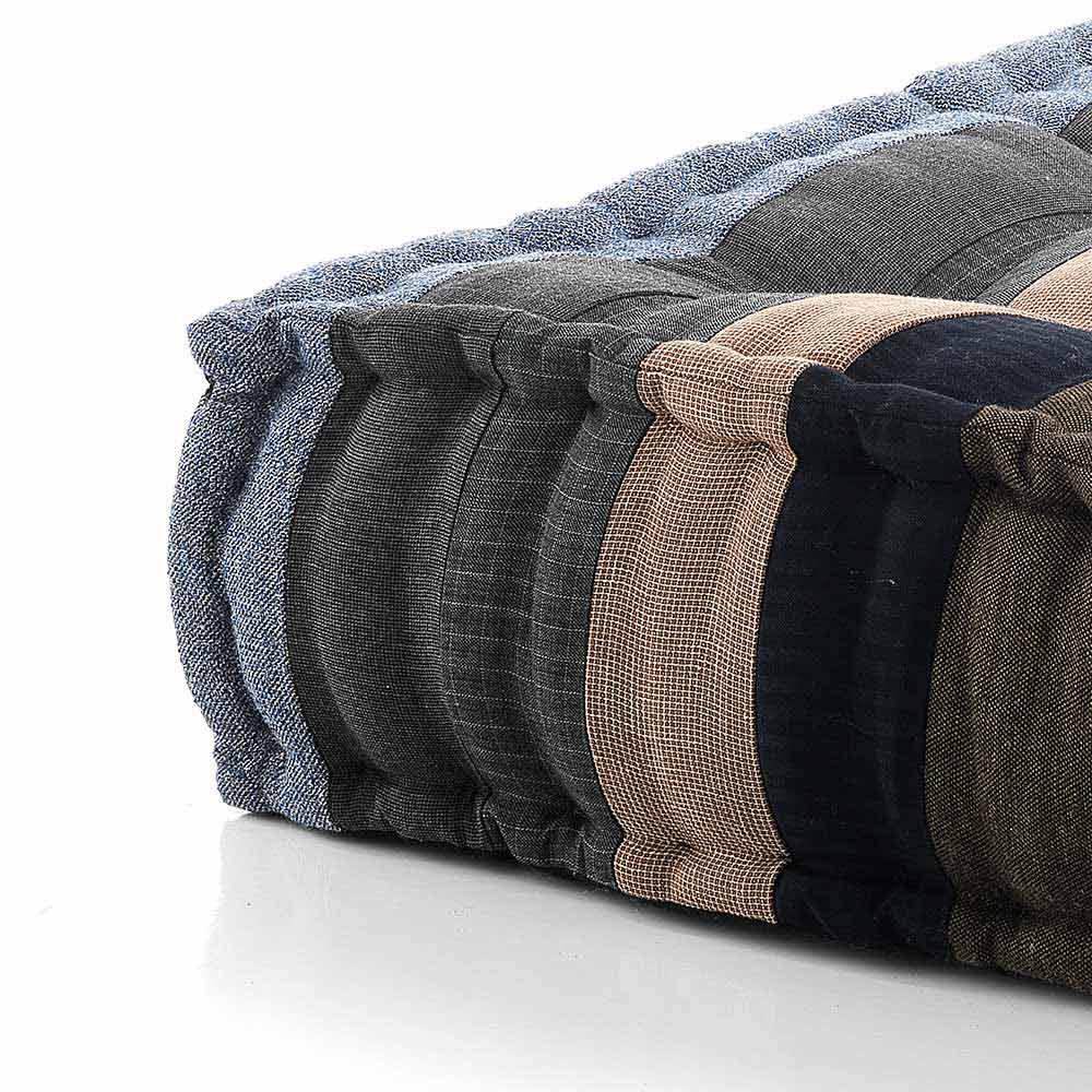 Sitzpuff aus Patchworkstoff oder quadratischem Samt mit ethnischem Design.