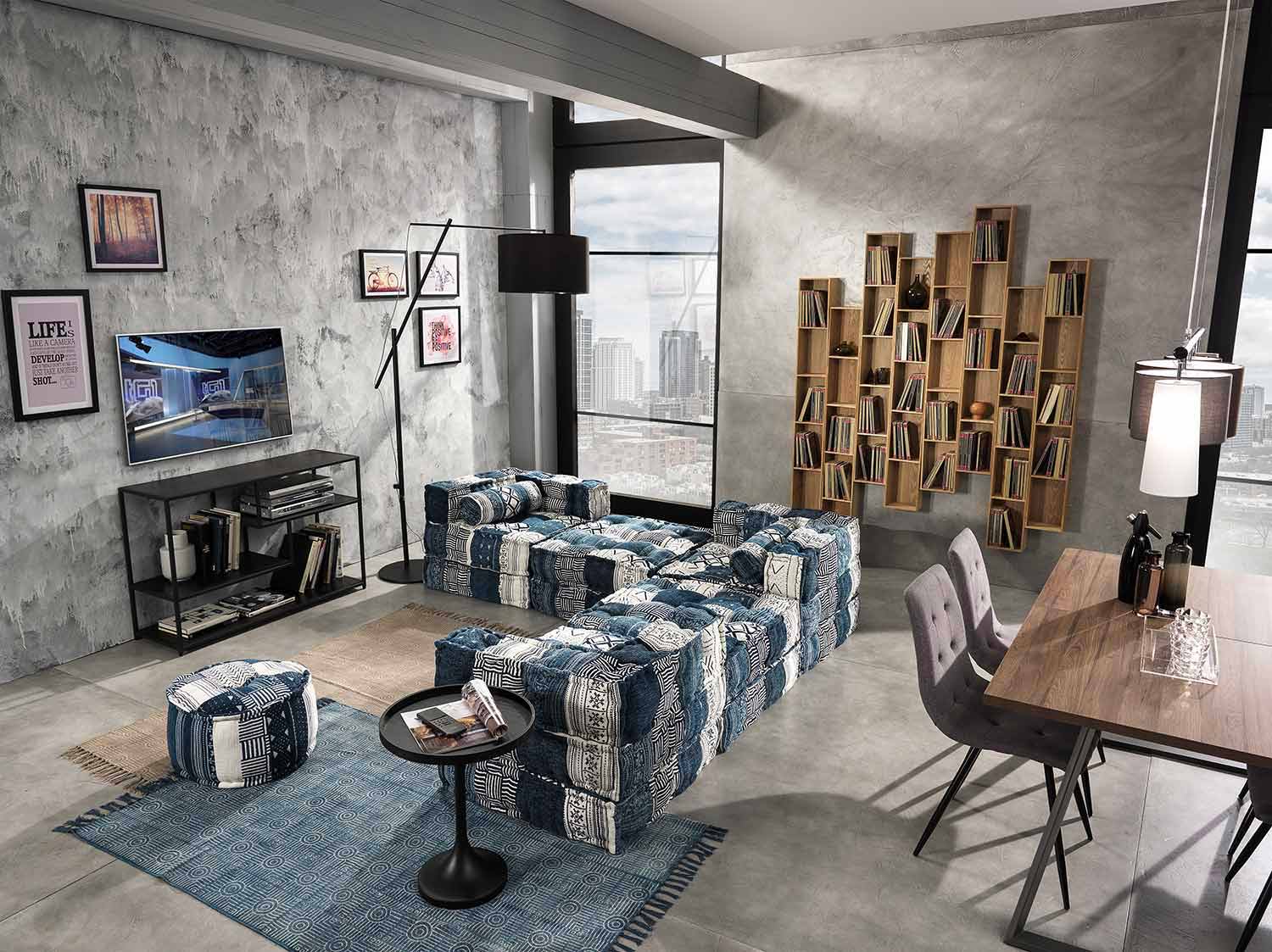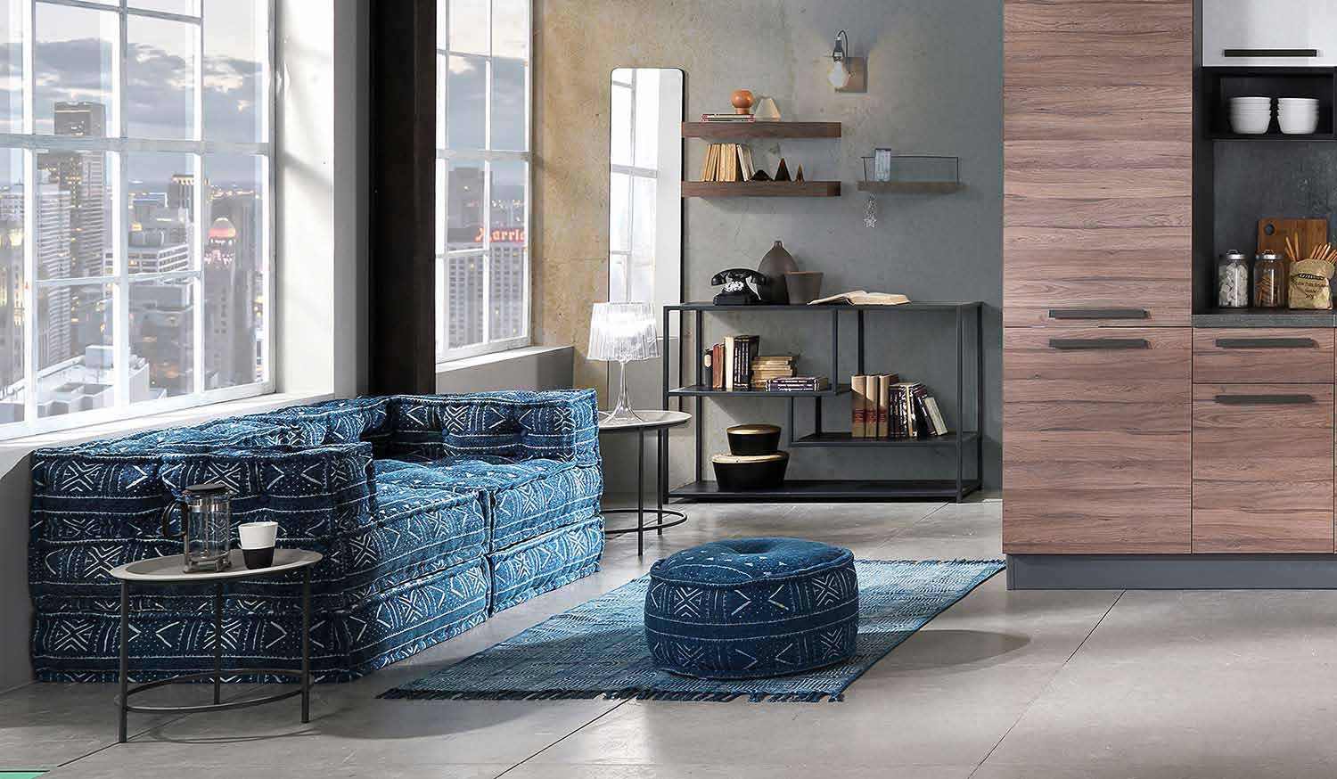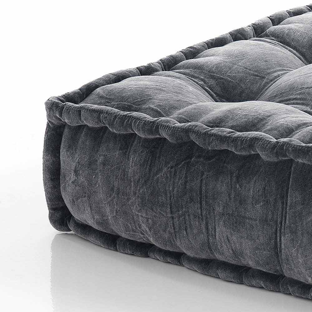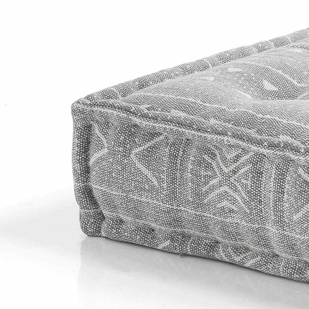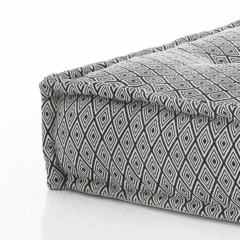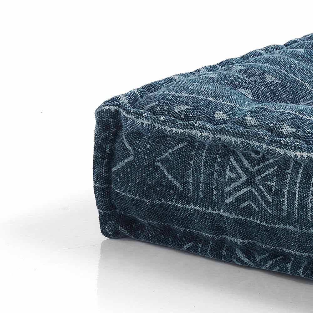 Sitzpuff aus Patchworkstoff oder quadratischem Samt mit ethnischem Design.