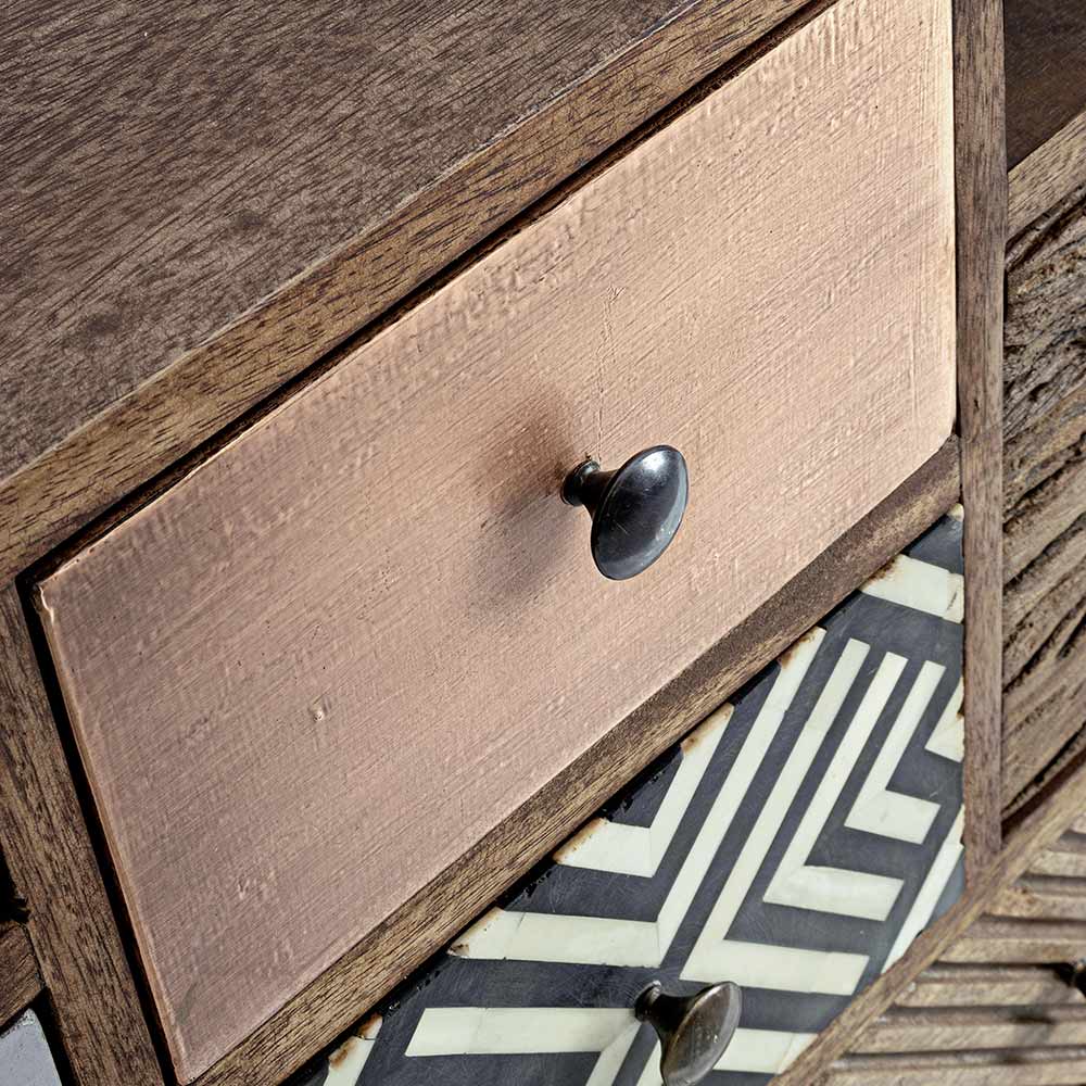 Sideboard aus recyceltem Mango- und Akazienholz mit 2 Türen und Schubladen im ethnischen Design.