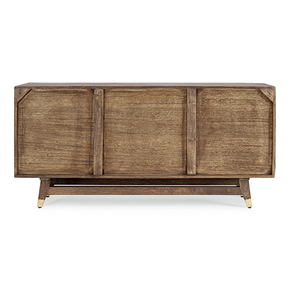 Dieses Design Anrichte für das Wohnzimmer hat eine Mango Holzstruktur und MDF - Rückenlehne mit Stahlgriffen.