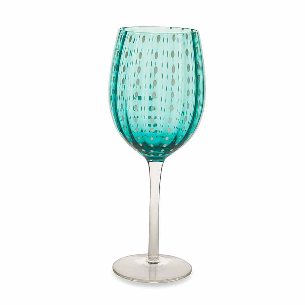 Glas Weingläser mit transparentem Stiel und farbiger und dekorierter Tasse, 12 Stück.