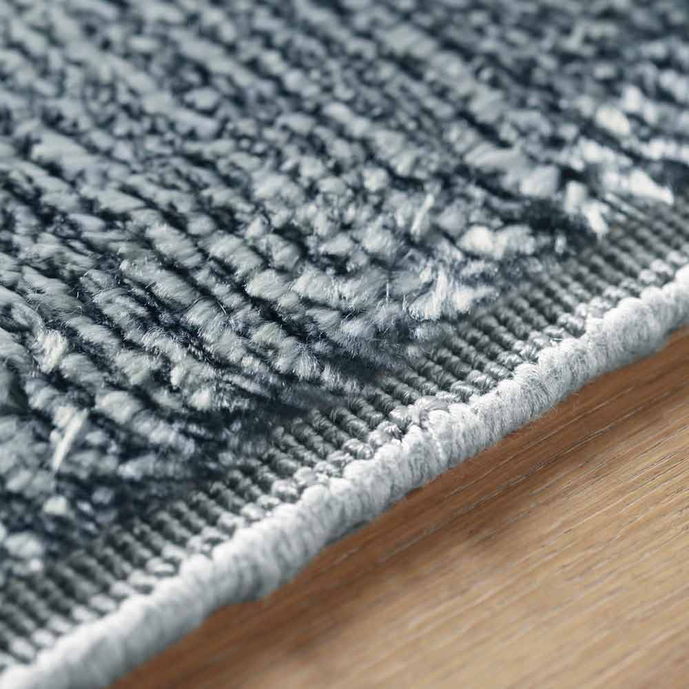 Farbiger Teppich in modernem Design aus Bananenseide und Baumwolle, zweidimensional erhältlich.