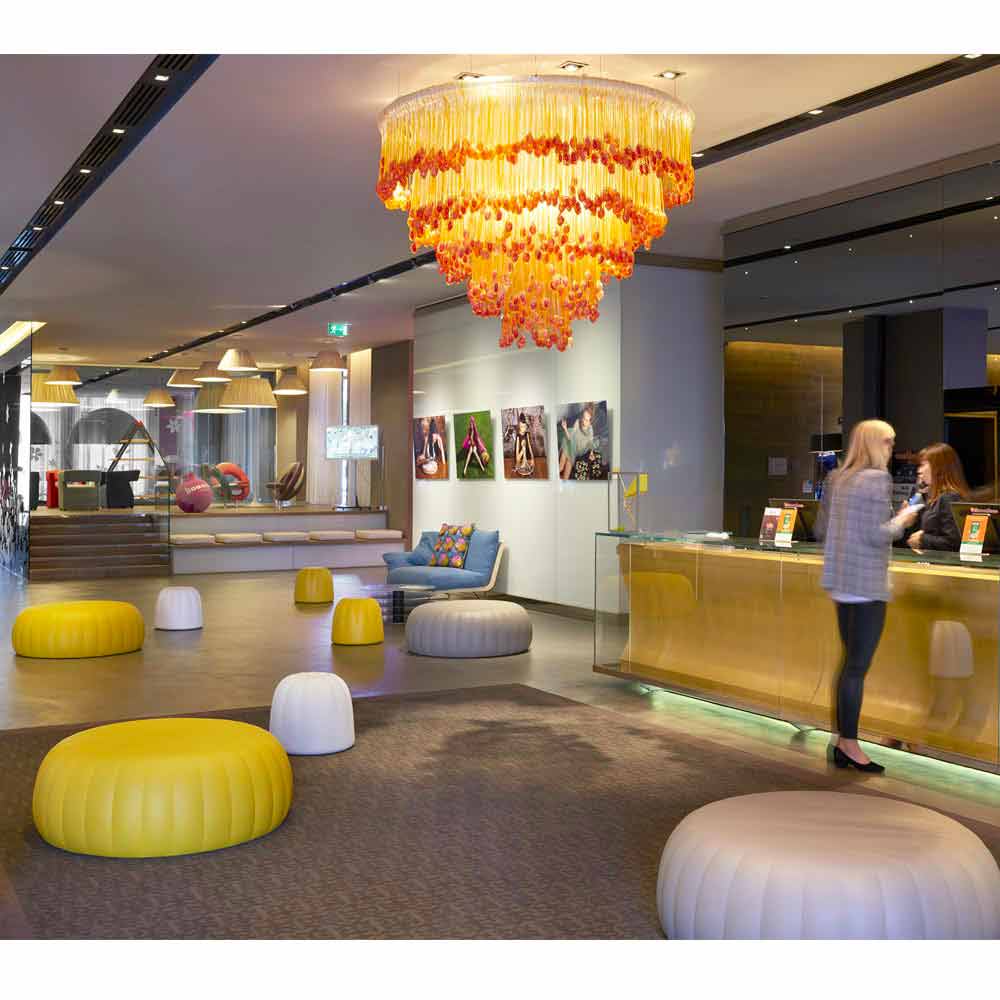 Gelee ist ein Hocker, der dank der "Gummibonbon"-Form, auf die er sich bezieht, sofort an die Idee von Weichheit erinnert.