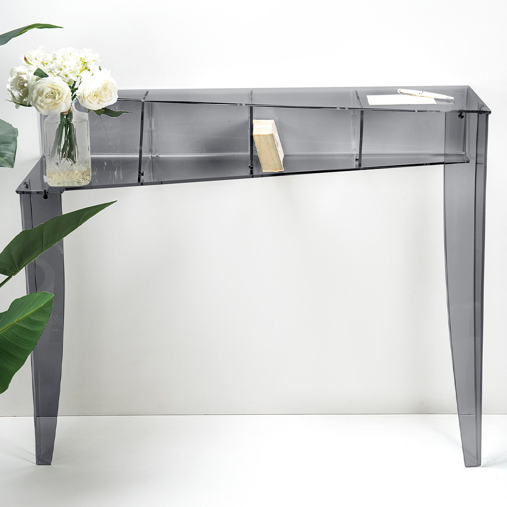 Mit ihrer dezenten, aber unvergesslichen Ästhetik ist die Konsole vielseitig genug, um aufzufallen, ohne die anderen Einrichtungselemente zu überfordern. Seine glatte, transparente Oberfläche eignet sich ideal zum Präsentieren von Kunstwerken, Fotorahmen oder einfach zum Organisieren Ihrer Schlüssel und der täglichen Post.