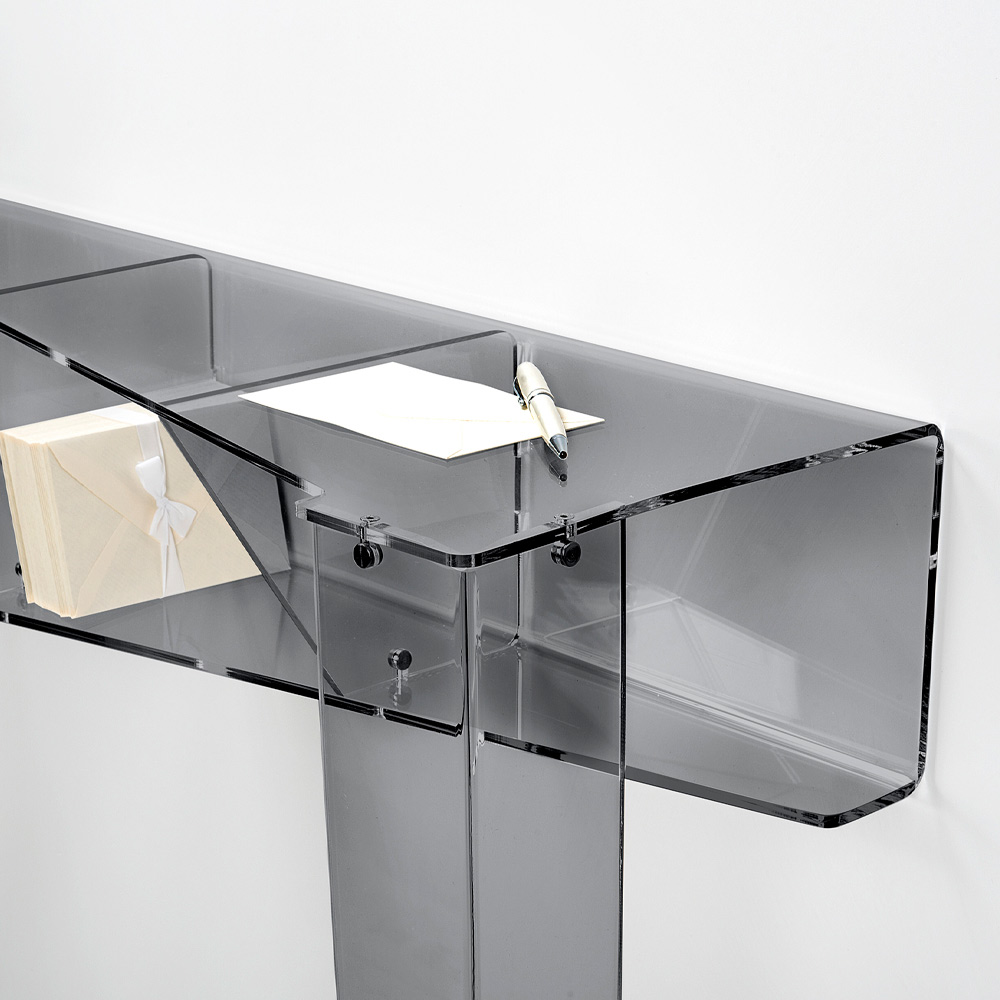 Die Konsole besteht zu 100 % aus hochwertigem PMMA aus reinem Polymer und verspricht nicht nur Festigkeit und Haltbarkeit , sondern auch eine Brillanz und Helligkeit, die mit der Zeit nicht verblasst. Wie ein wahres Kunstwerk fängt diese Konsole das Licht ein und reflektiert es und schafft so eine lebendige und dynamische Atmosphäre in jedem Raum.
