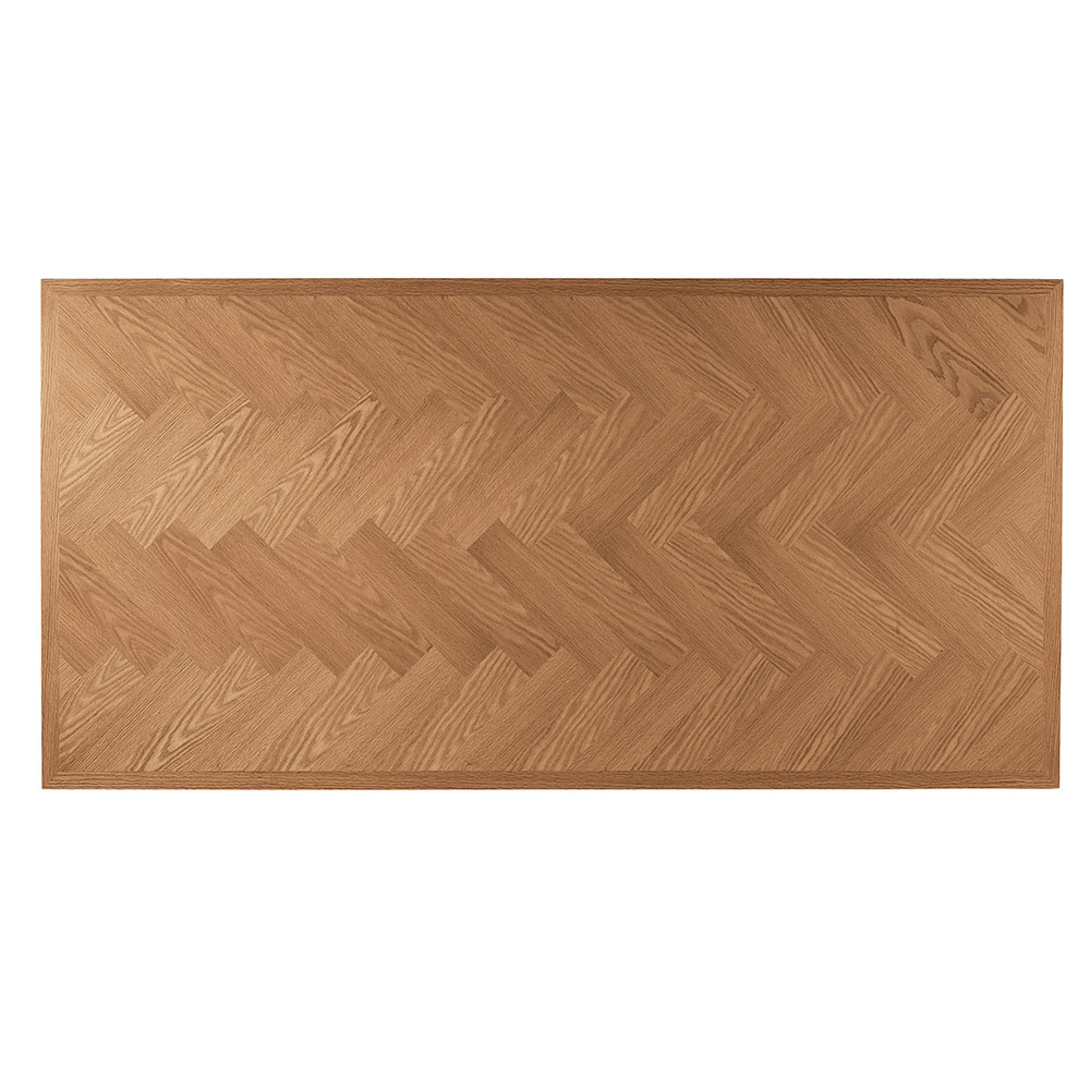 Dieser Tisch vereint auf perfekte Weise natürliche Wärme und modernes Design . Die Eichenplatte wertet den Raum mit ihrer natürlichen Maserung und edlen Ästhetik auf und macht jedes Stück zu einem Unikat, das dem Essbereich oder Wohnzimmer Charakter verleiht.