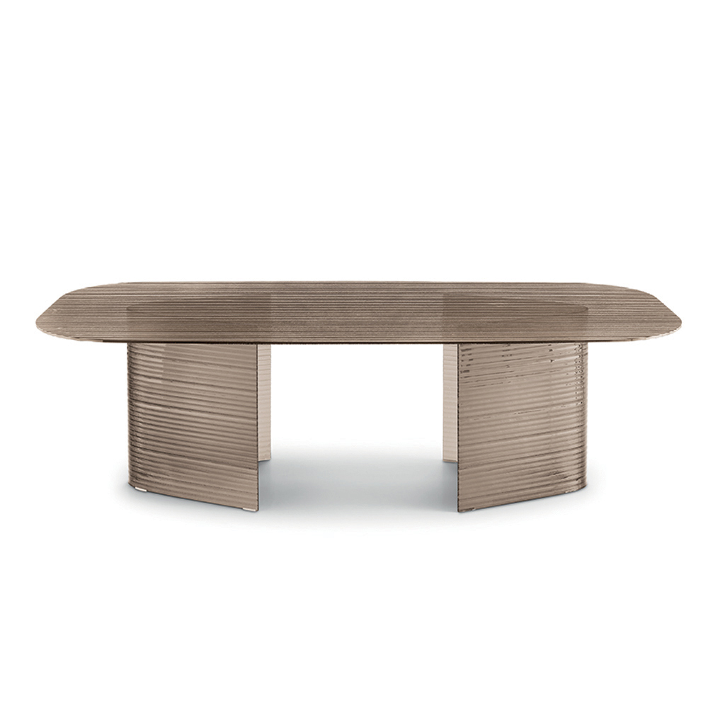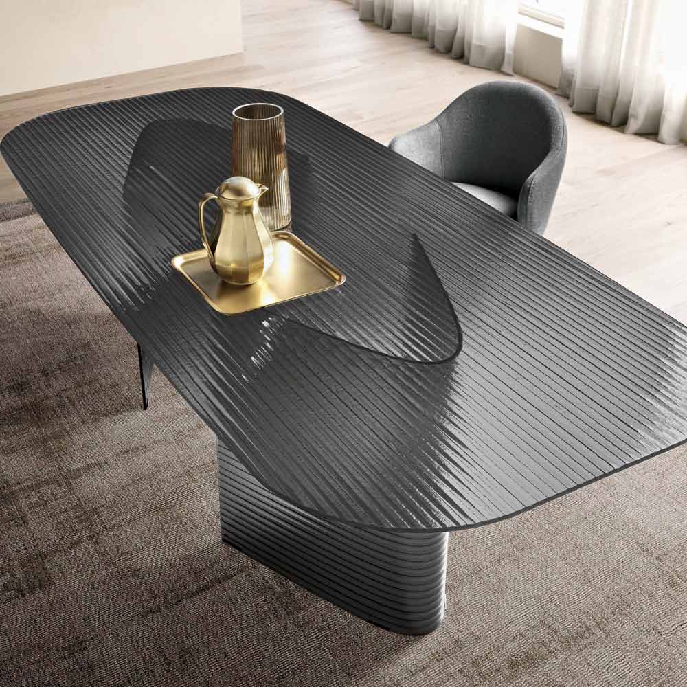 Fester Tisch 240 x 120 cm aus transparentem, geriffeltem Glas, hergestellt in Italien - Varo