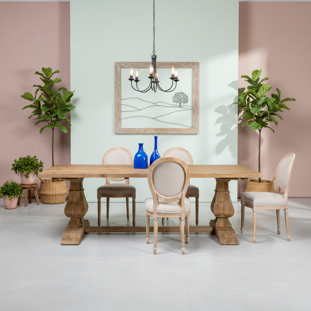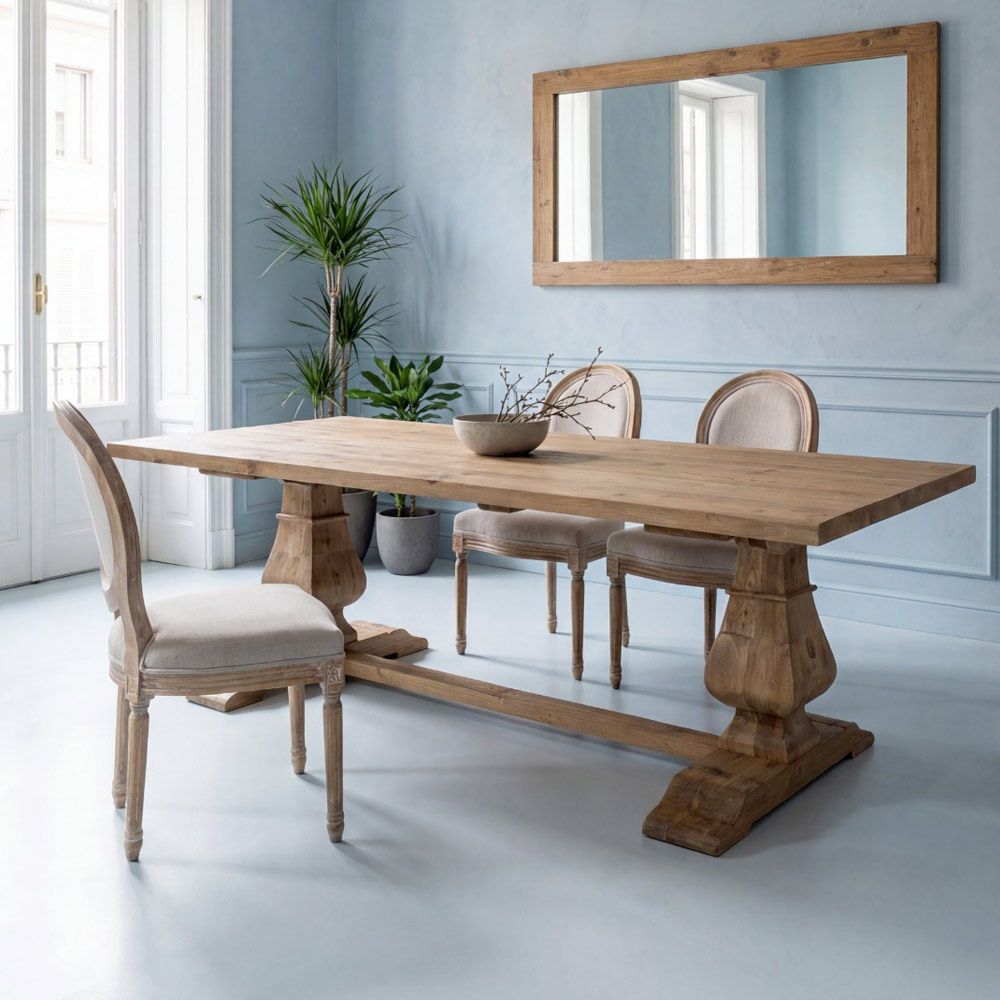 Die solide Konstruktion und die formschönen Beine verleihen dem Tisch einen markanten und dekorativen Charakter und passen perfekt zu rustikalen, Shabby-Chic- oder eleganten Landhausstil-Ambiente.