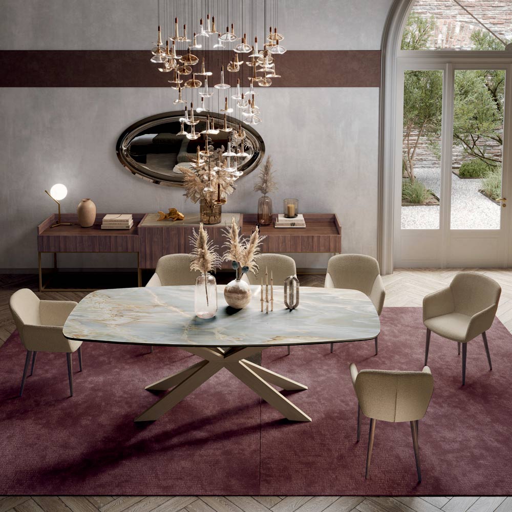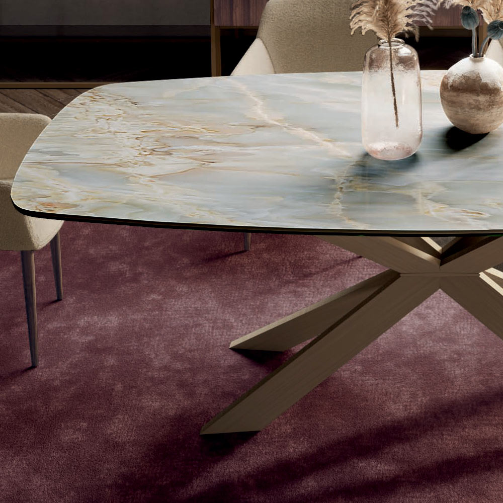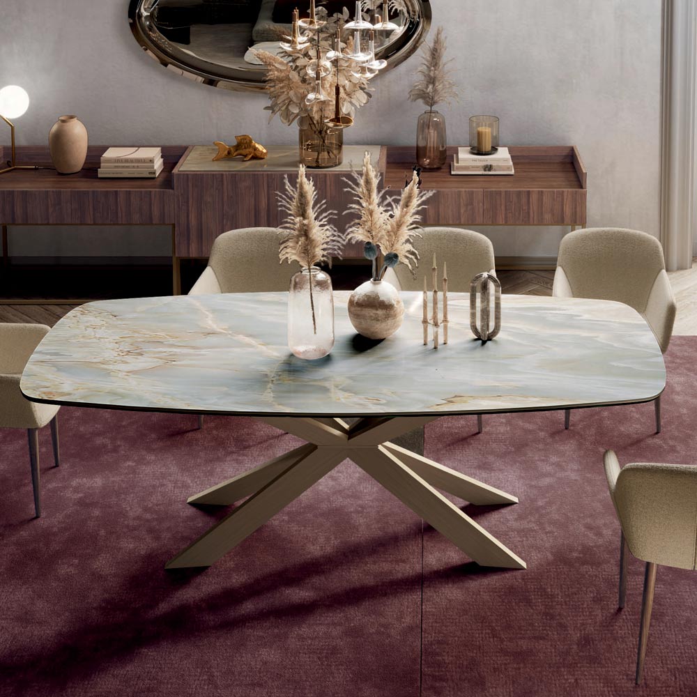 Fester Tisch aus Stahl und Keramik, hergestellt in Italien
