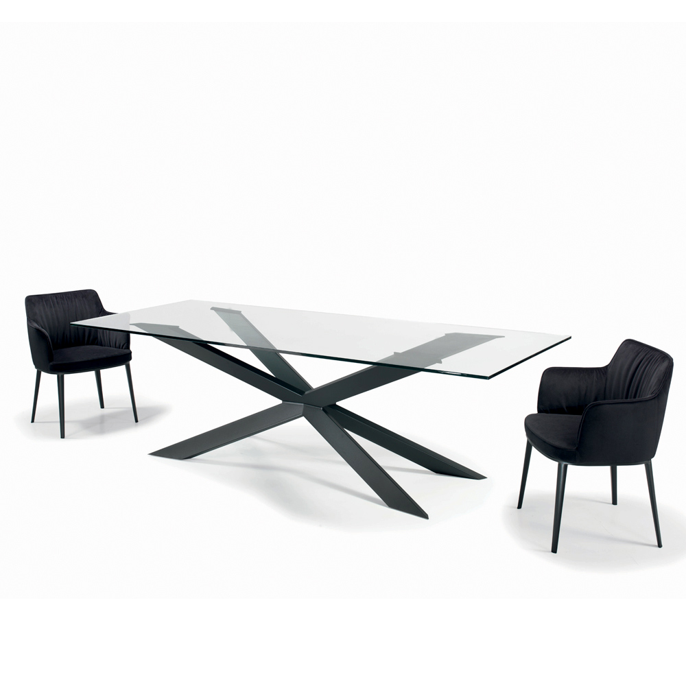 Fester Tisch aus Stahl und Glas, hergestellt in Italien