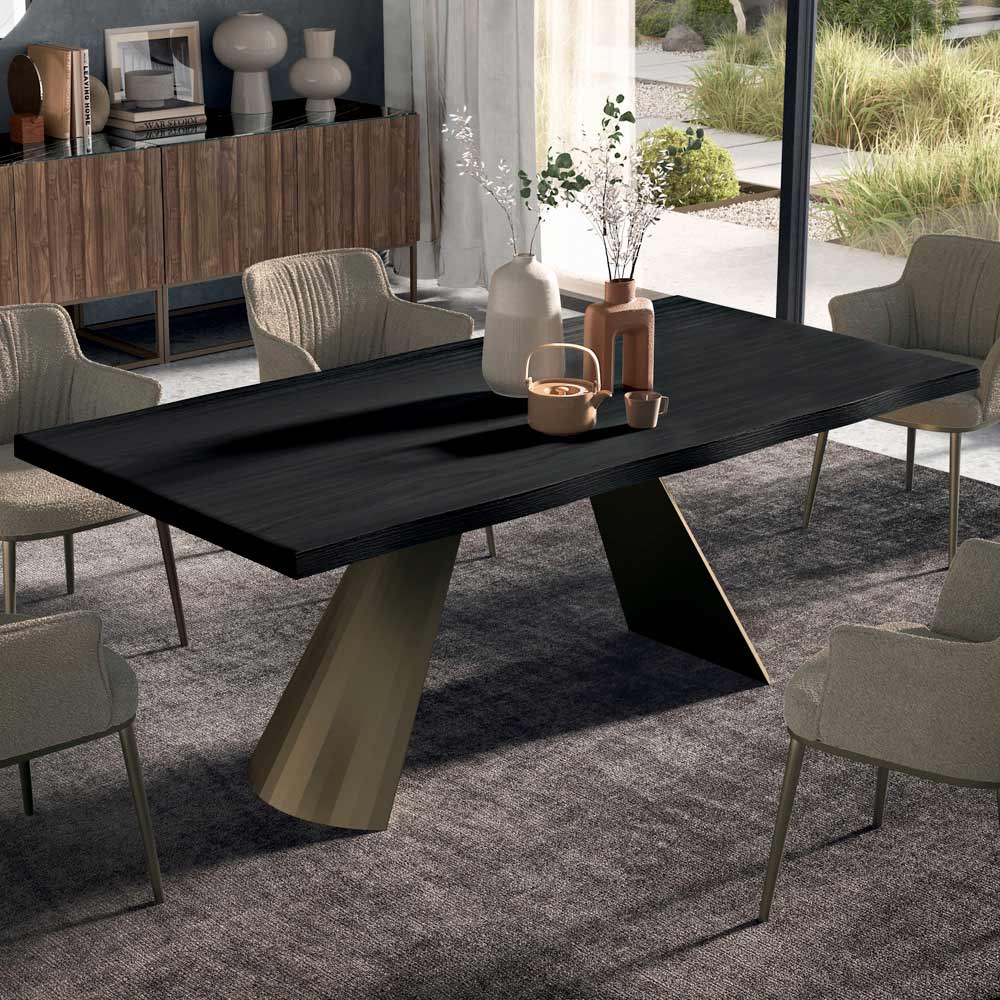 Fester Tisch aus Stahl und Holz, hergestellt in Italien