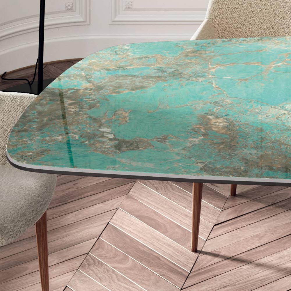 - polierter Amazonit (Stärke 10 mm Glas + 6 mm Keramik)