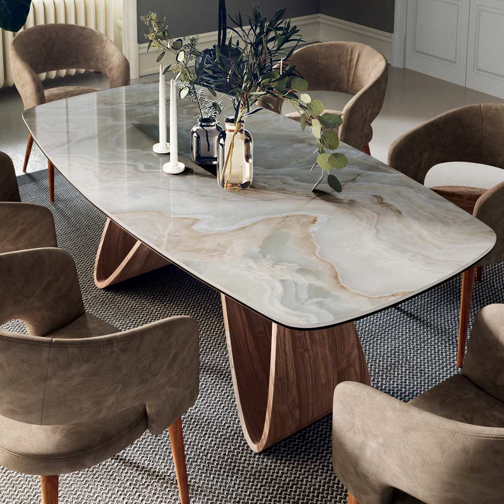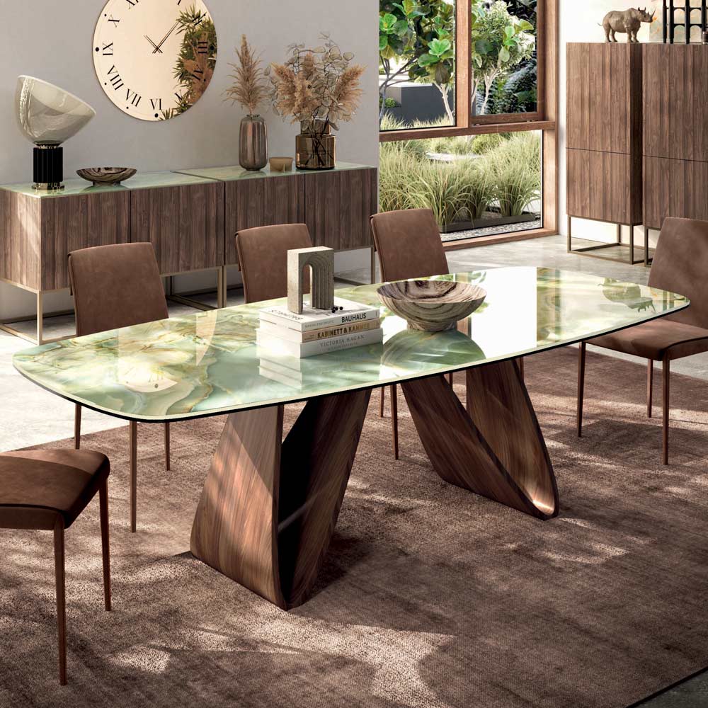 Fester Tisch aus Holz und Keramik, hergestellt in Italien