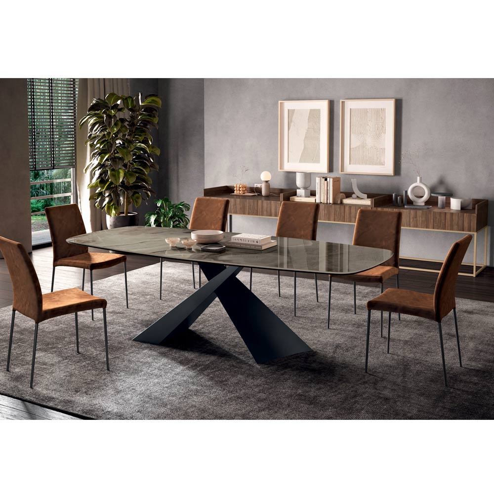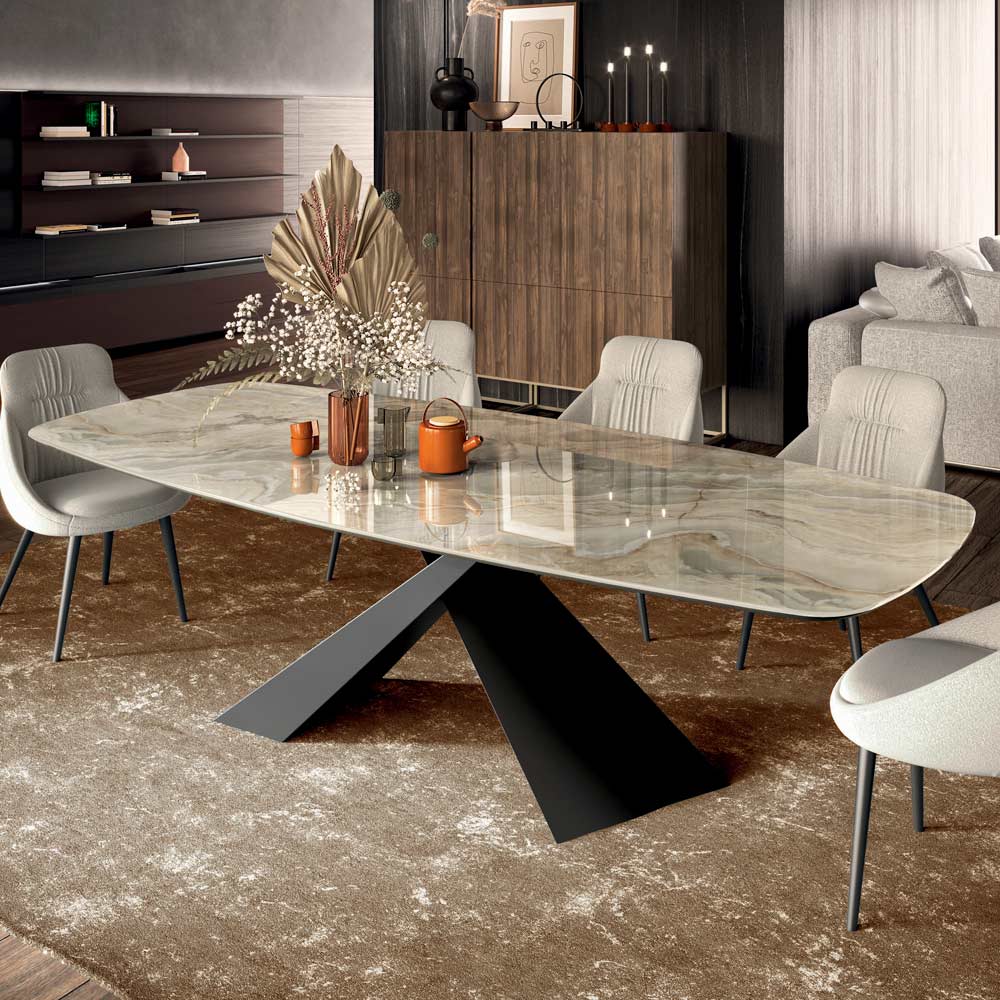 Fester Tisch aus Stahl und Keramik, hergestellt in Italien