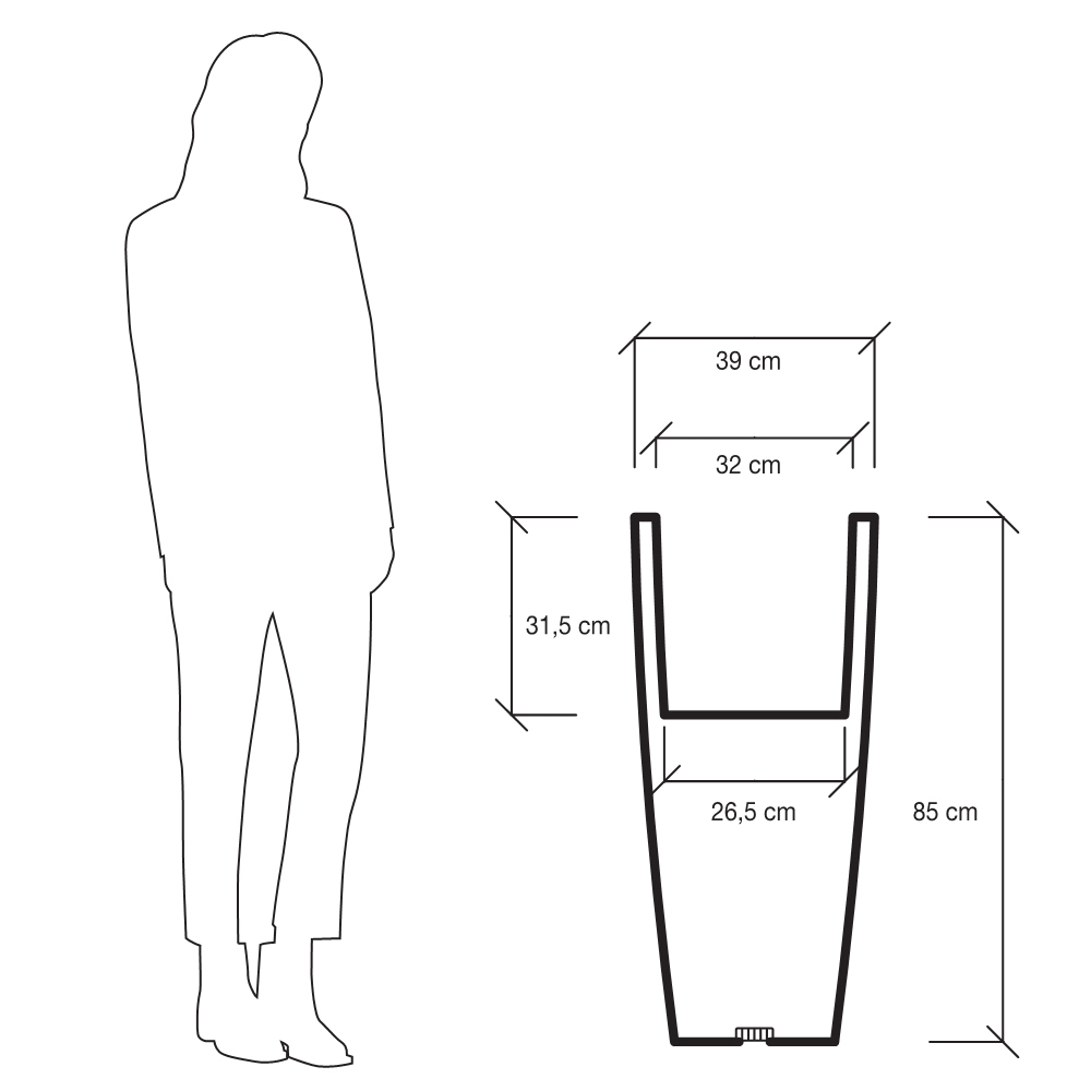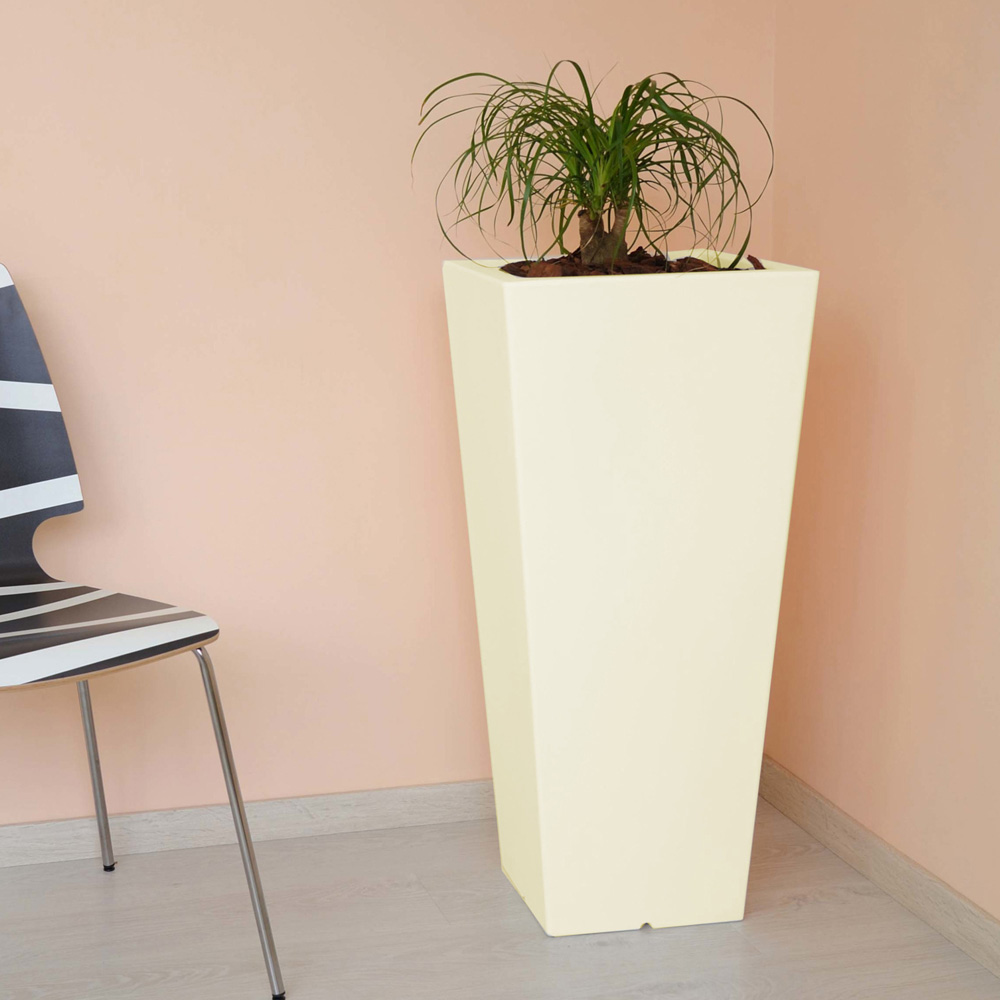 Hohe Vase mit quadratischer Form, elegant und voller Stil, geeignet für jeden Garten. Hergestellt aus Polyethylen, ist es
