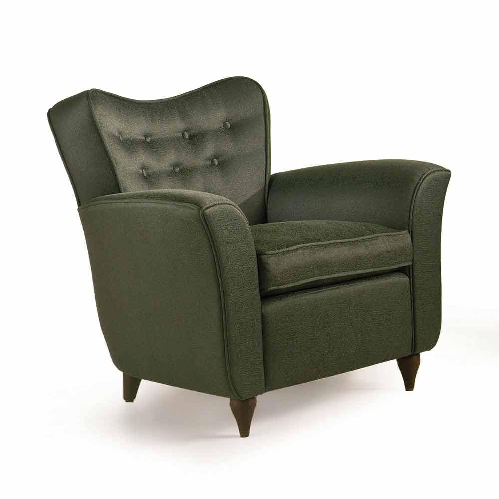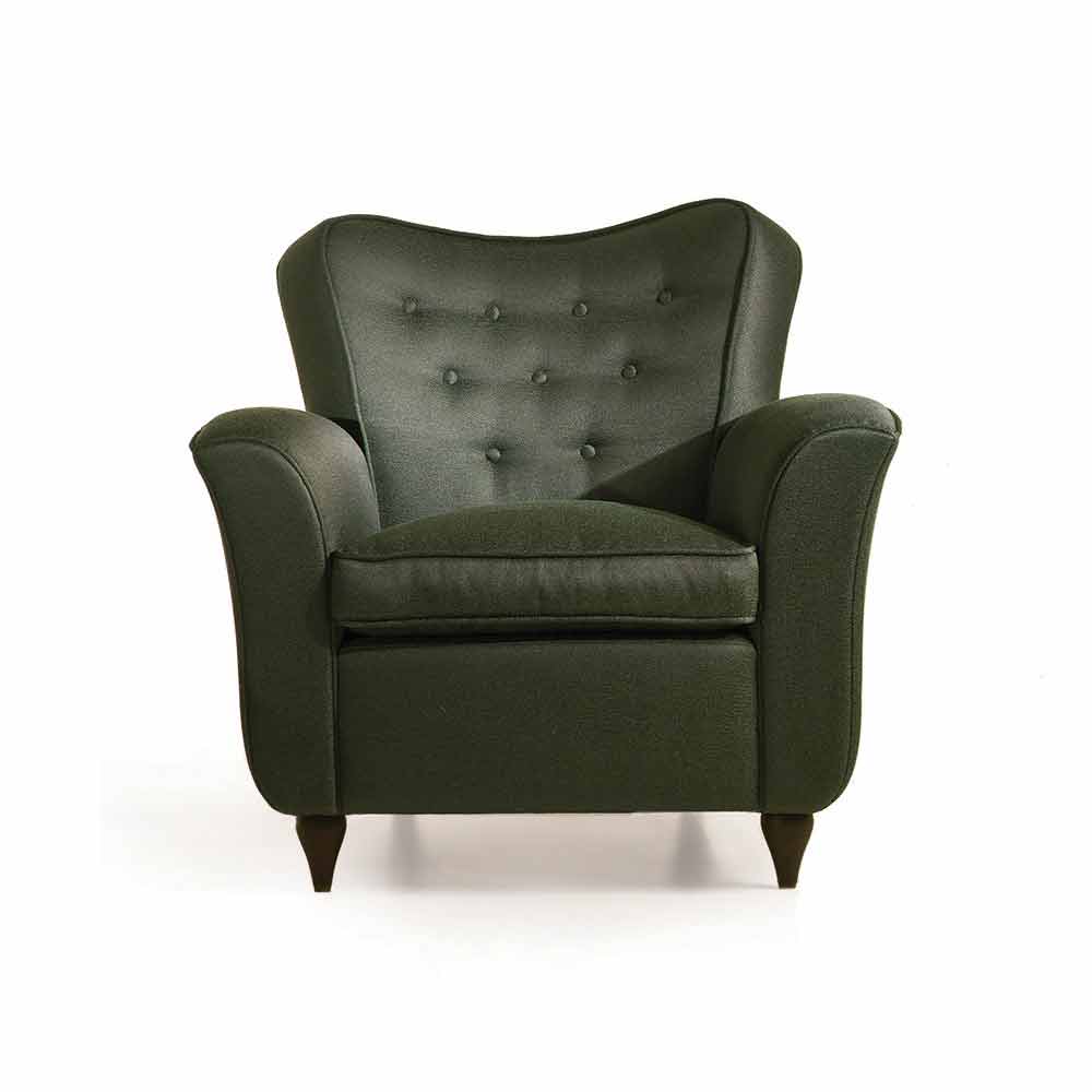 Gepolsterter Sessel mit Rückenlehne capitonnè, Füße in matt dunkel Nussbaum, Stoff DD Artemis 15013/025.