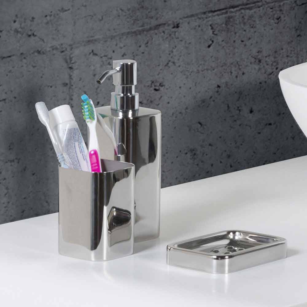 Aufsatz-Badzubehör aus verchromtem Edelstahl.