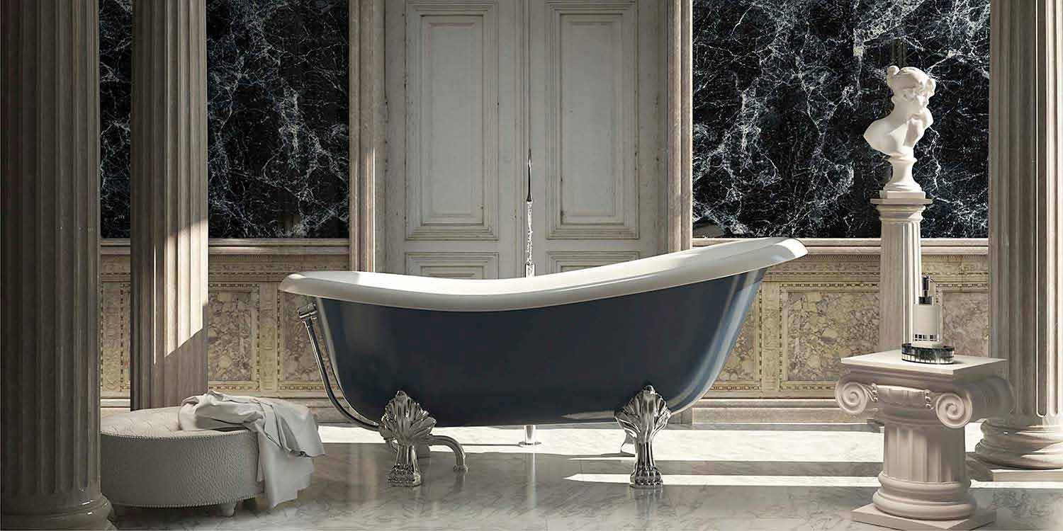 Freistehende Badewanne im klassischen blauen Harzdesign, Fregona