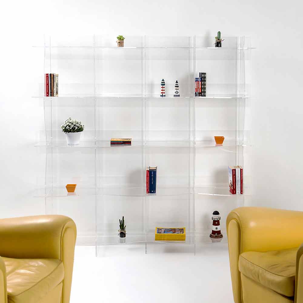 Private Bibliothek mit minimalen Linien und die Wirkung der Aufhebung in der Leere für die Bücher, die es einrichten: nur die Bücher, in der Tat, personalisieren die häusliche Umgebung. Das transparente Pam-Bücherregal wurde als selbsttragende Bibliothek geboren, aber es ist möglich, es an der Wand zu verankern. Die physikalisch-technischen Eigenschaften von Plexiglas (stoßfest, nicht verformbar, unveränderbar, wärmeisolierend) machen das Produkt sowohl zu Hause als auch im Freien geeignet. Die Helligkeit und Helligkeit werden über die Zeit konstant und unverändert beibehalten. Das PMMA Plexiglas aus reinem Polymer ist ungiftig, hypoallergen, geruchlos und antibakteriell. 100% recycelbar. Entspricht UNI EN 71-3: 200. Entworfen, entworfen und hergestellt in Italien, mit italienischen Materialien.