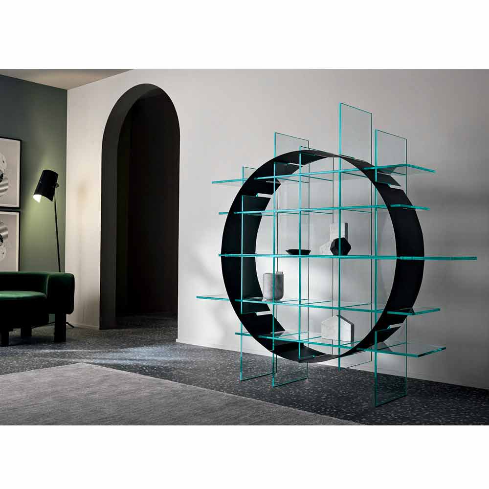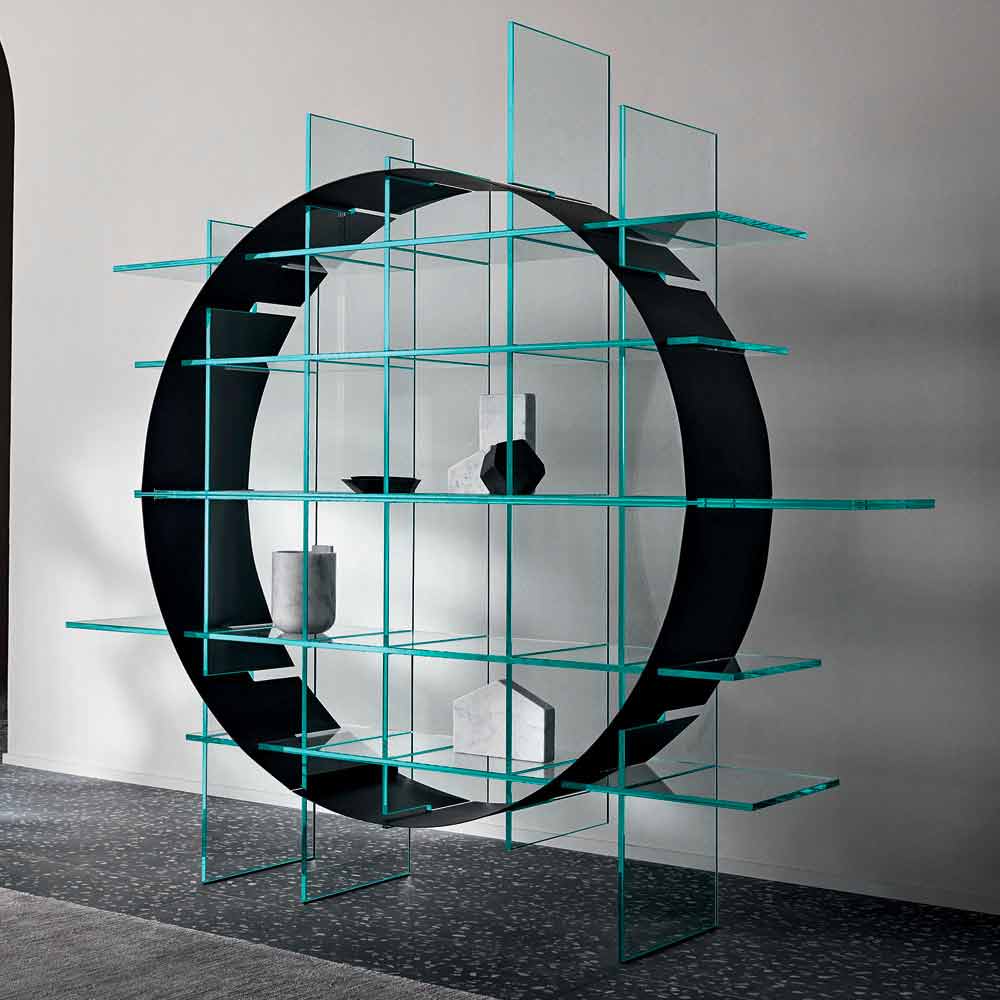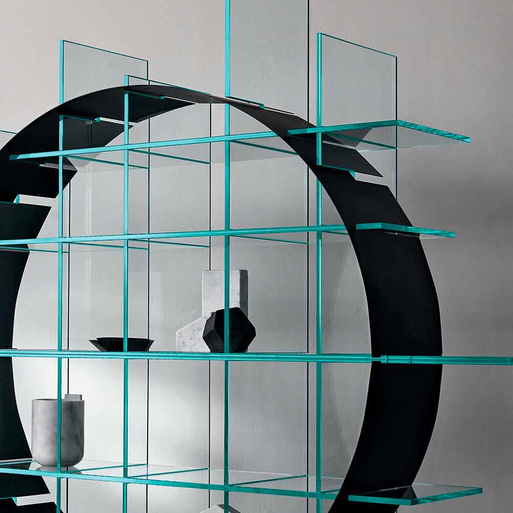 Dieses Bücherregal für das Wohnzimmer zeichnet sich durch sein einzigartiges und unglaublich elegantes Design aus, das mit Seiten und Regalen vollständig aus extra klarem Glas besteht.. . .