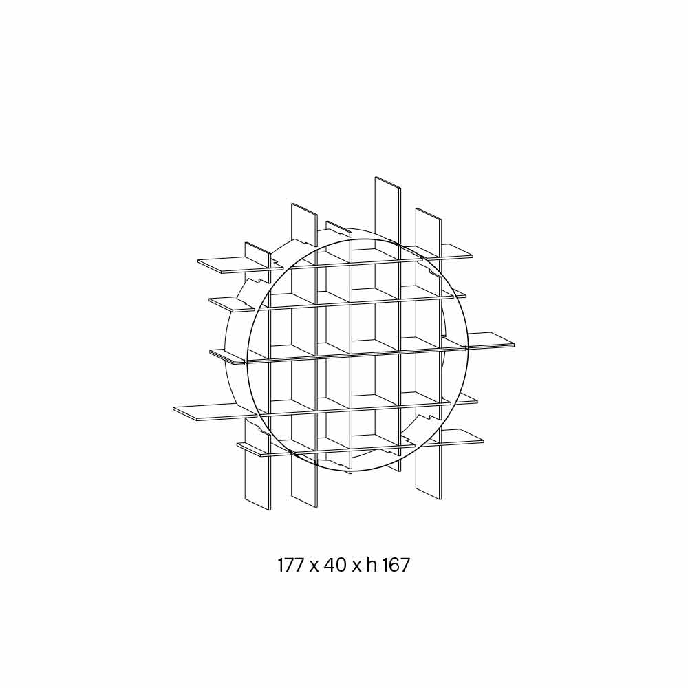 Seine Besonderheit besteht in der ineinandergreifenden Struktur aus dünnem Blech mit kreisförmiger Form in gebürstetem Schwarz, die sich in die Komposition einfügt und einen Effekt von extremer Raffinesse und Geometrie verleiht.