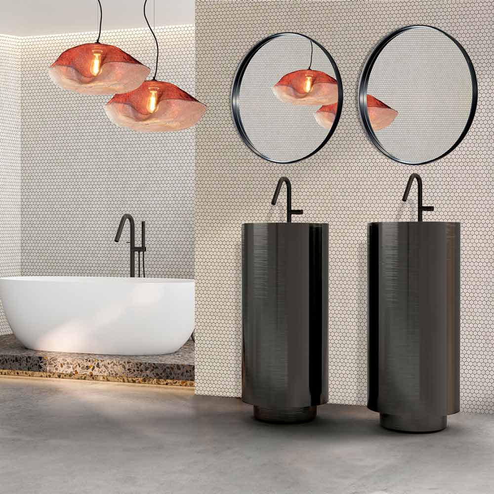 Lassen Sie sich von dem einzigartigen Design unseres freistehenden Waschbeckens faszinieren, ein echtes Stil-Statement für Ihr Badezimmer. Dieses aus einem einzigen Blatt nahtlosen SUS 304-Stahls geschmiedete Waschbecken verfügt über eine leistungsstarke PVD-Beschichtung , die für ein makelloses Finish und zeitlose Optik sorgt. Erhältlich in drei Ausführungen , um allen Designanforderungen gerecht zu werden, mit einer Möglichkeit für einen Wandablauf , der die Installation erleichtert. Seine wesentlichen Volumina und minimalen Dicken sind das Markenzeichen eines Designs, das das Konventionelle herausfordert. Jedes Detail, vom konischen Waschbeckenfuß bis zum mitgelieferten Klick-Klack-Ablaufgarnitur aus demselben Material, ist darauf ausgelegt, eine ästhetische Kohärenz zu wahren, die jede Umgebung aufwertet.