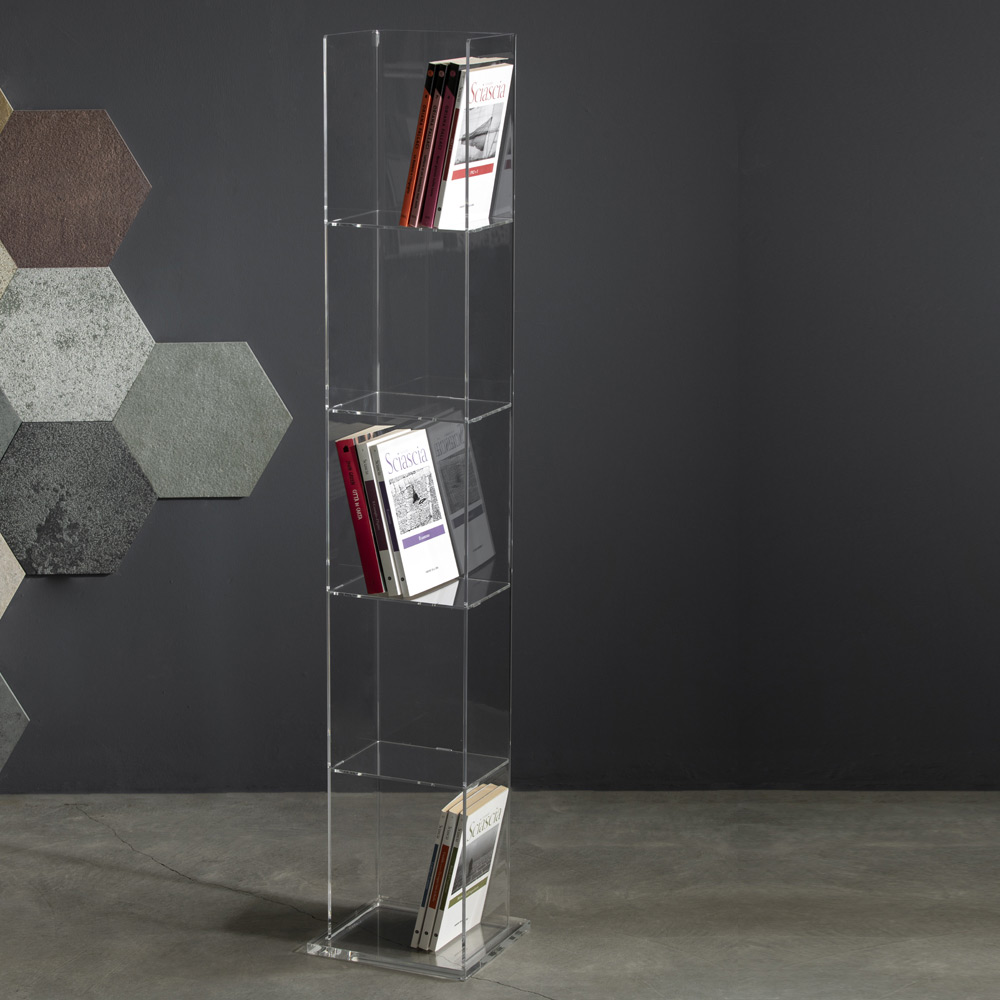 Freistehendes Bücherregal aus transparentem Acrylglas, Design made in Italy.