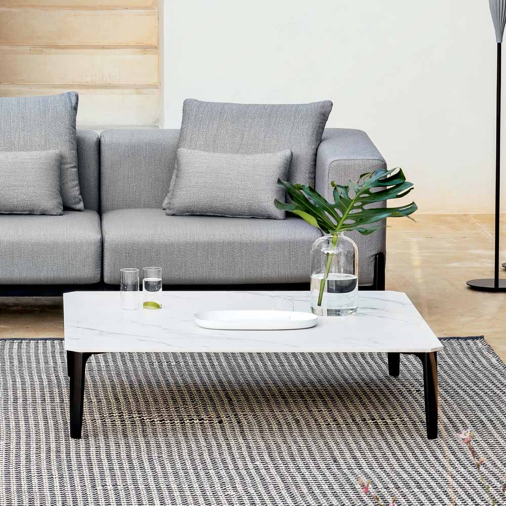 Niedriger Tisch im Freien aus Aluminium- und Porzellansteinzeug in verschiedenen Ausführungen, hergestellt in italienischer Qualität.