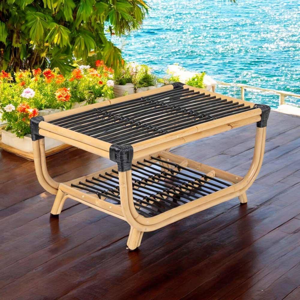Tisch für den Außenbereich aus Geflecht aus natürlichem Rattan