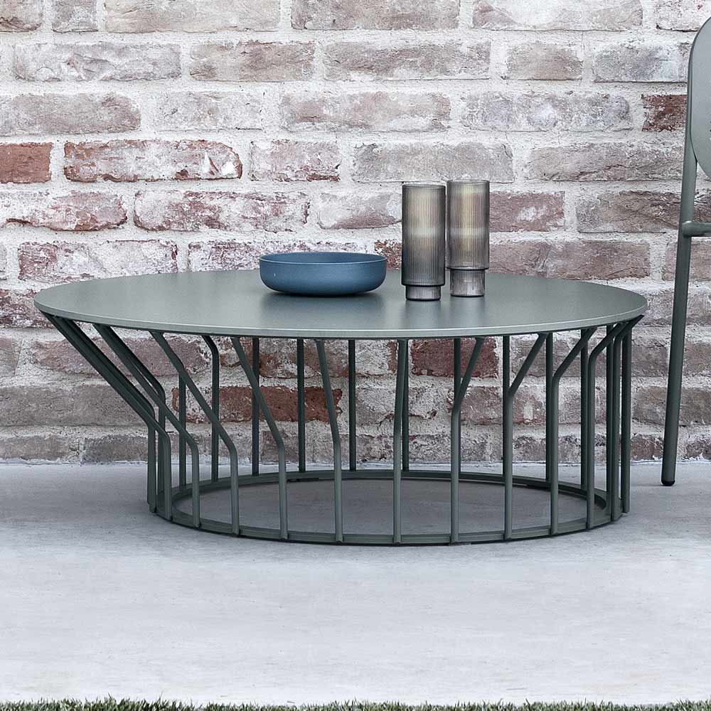Garten-Couchtisch aus HPL und lackiertem Metall Made in Italy.