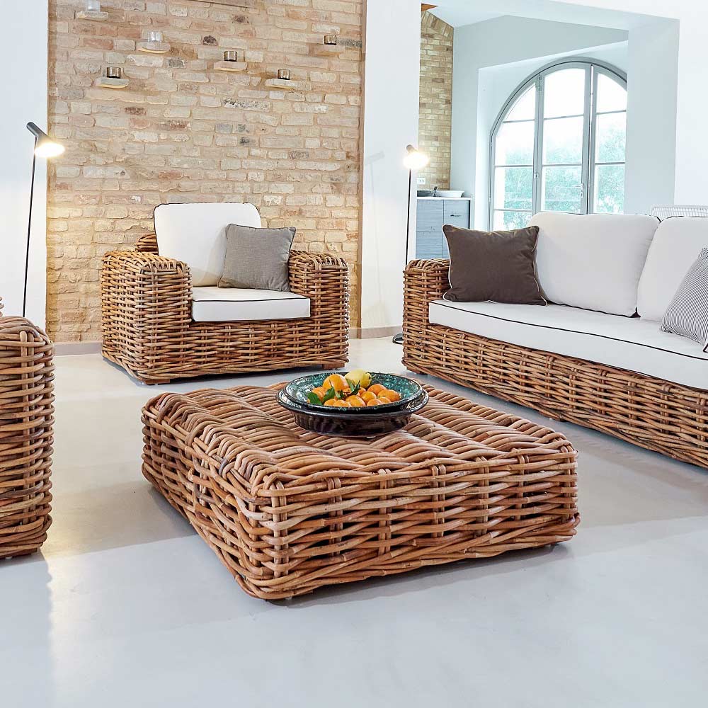 Couchtisch-Pouf für den Außenbereich aus natürlichem Rattan mit Kissen