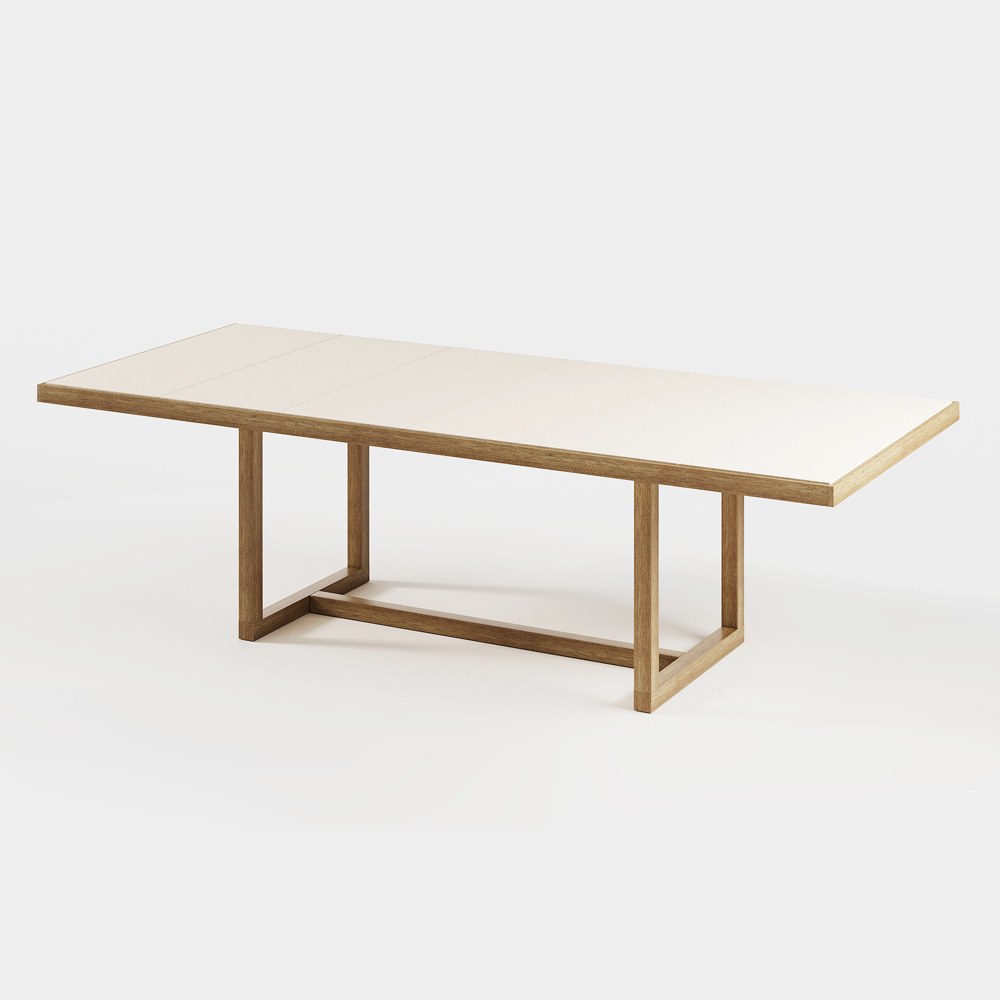 Steinzeugplatten charakterisiert, die die Platte umreißen und dem Tisch Charakter und Persönlichkeit verleihen.