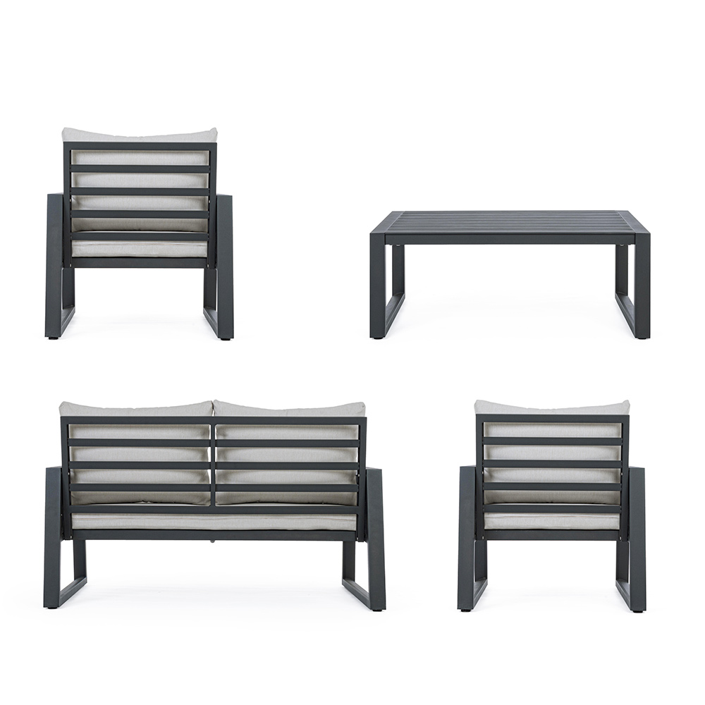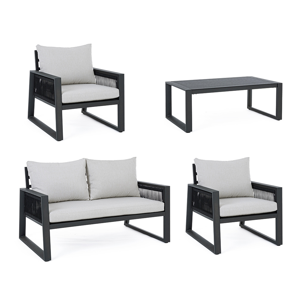 | Maße | Sessel: B71 x T78 x H 74,5 x H Sitz 41 x H Armlehnen 56 cm; Sofa: L130 x P78 x H 74,5 x H Sitz 41 x H Arme 56 cm; Couchtisch: L110 x T 60 x H40 cm |