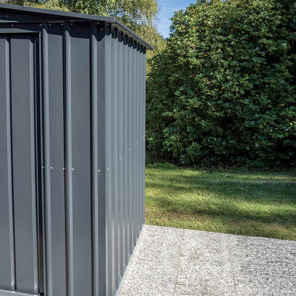 Ecksystem aus anthrazitfarbenem Blech, lackiert mit Epoxidharzfarbe mit 15-jähriger Garantie und einer