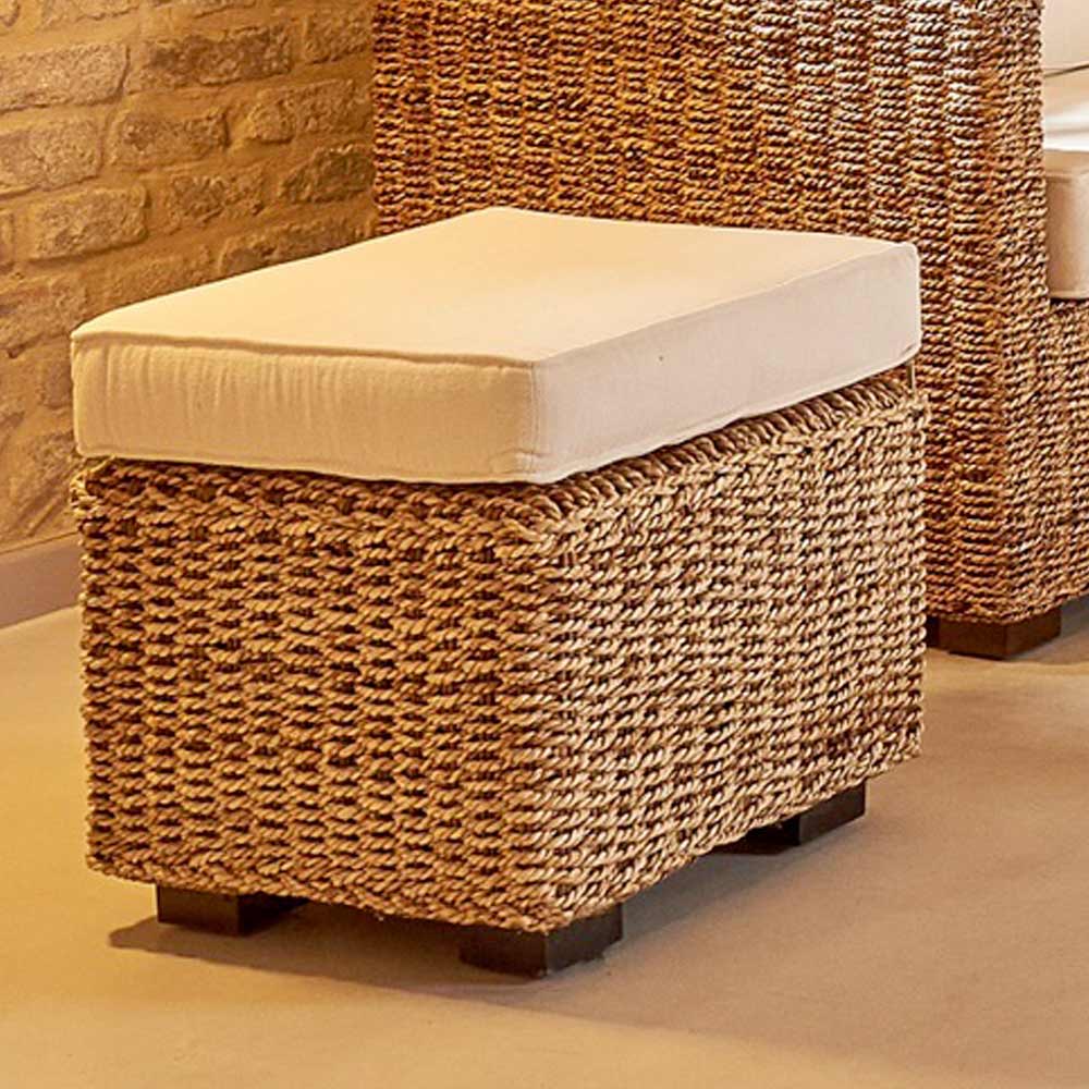 Outdoor-Pouf aus natürlicher Abaca-Faser mit Kissen