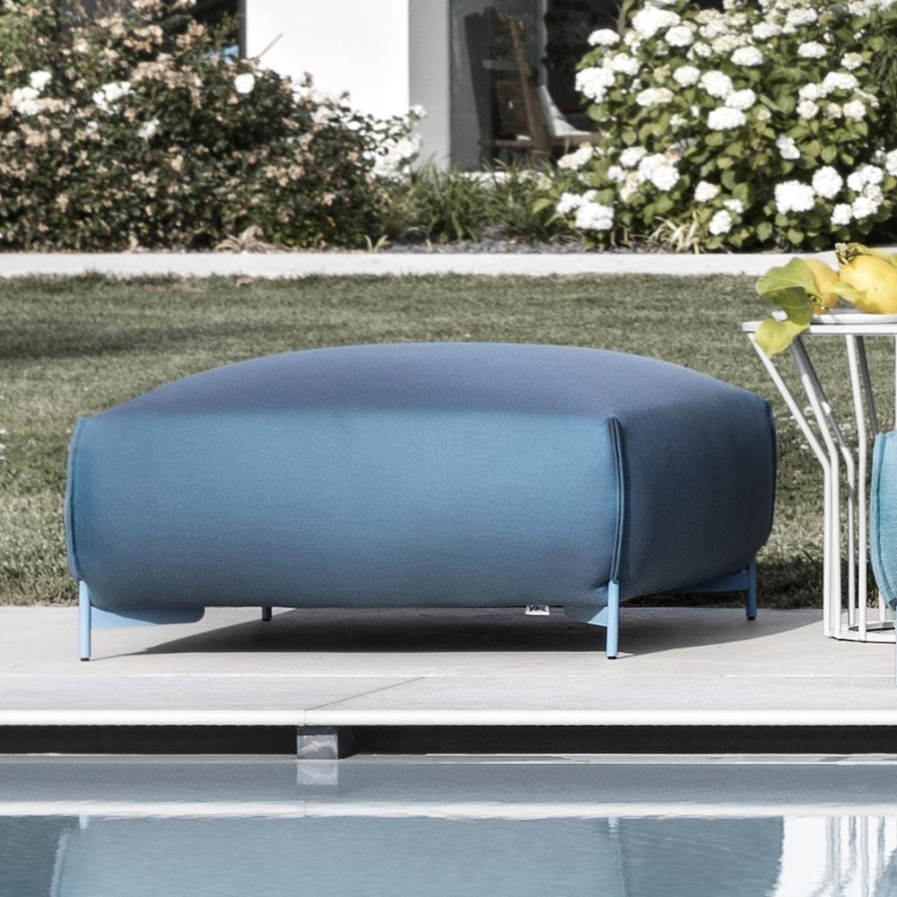 Gepolsterter Gartenhocker aus Stoff und lackiertem Metall Made in Italy.
