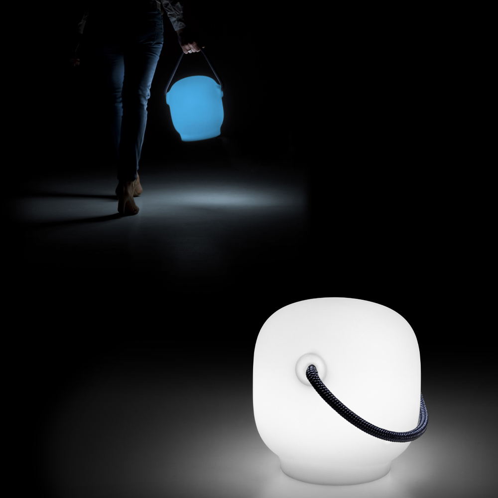 Außenleuchte komplett in Italien hergestellt aus mattem Polyethylen mit Griff und praktischem RGB-LED-Beleuchtungsset . Eine tragbare Lampe mit kleinen Abmessungen, die in jedem stilistischen Kontext ein stimmungsvolles Licht erzeugt. Seine Besonderheit ist die Stromversorgung durch einen internen Akku, der es zusammen mit dem praktischen farbigen Seilgriff ermöglicht , die Bewegung zu erleichtern und so eine echte nachfüllbare Laterne zu schaffen . Sein modernes und avantgardistisches Design macht es zu einer perfekten Lösung sowohl für den häuslichen Außenbereich als auch für den Objektbereich, in dem mit verschiedenen Stilen und Ästhetiken für ein exklusives und raffiniertes Ergebnis gespielt werden kann .