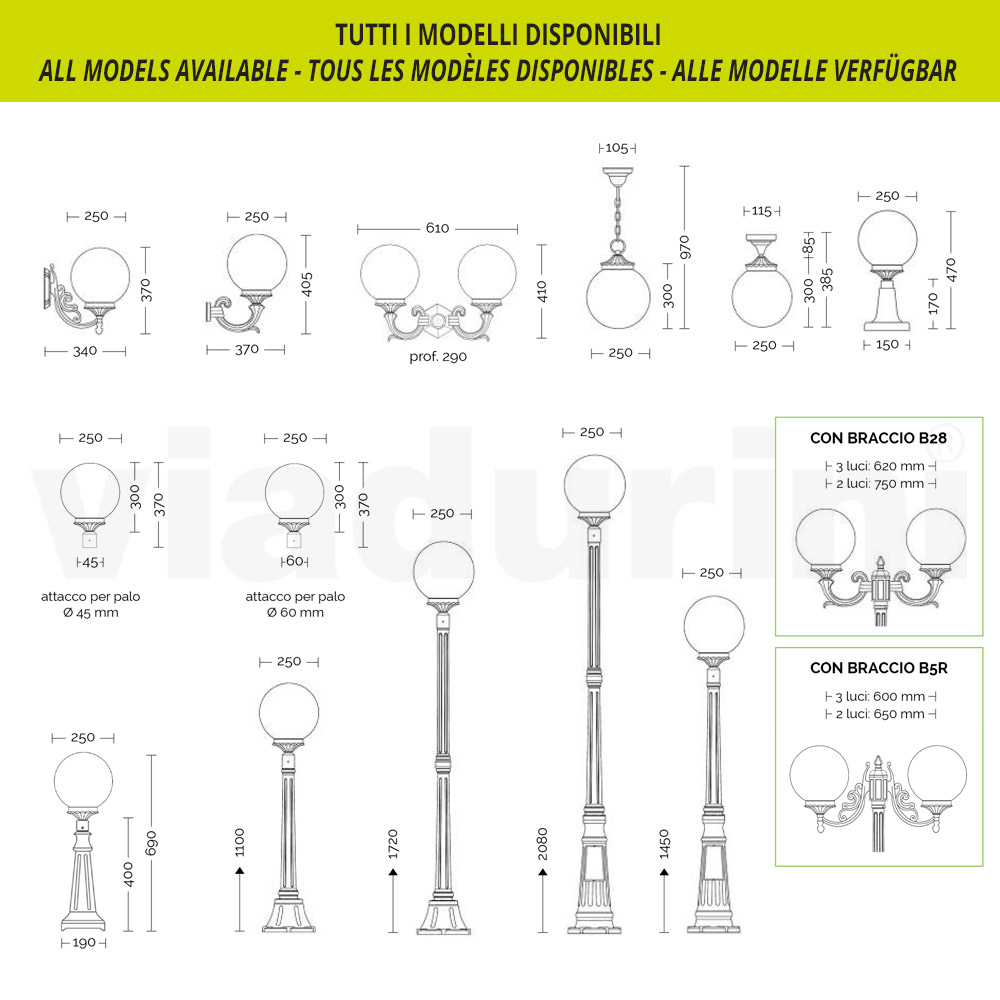 Gartenlampe mit Struktur aus Aluminiumdruckguss und Diffusor in Opalacrylkugel , vollständig in Italien hergestellt.