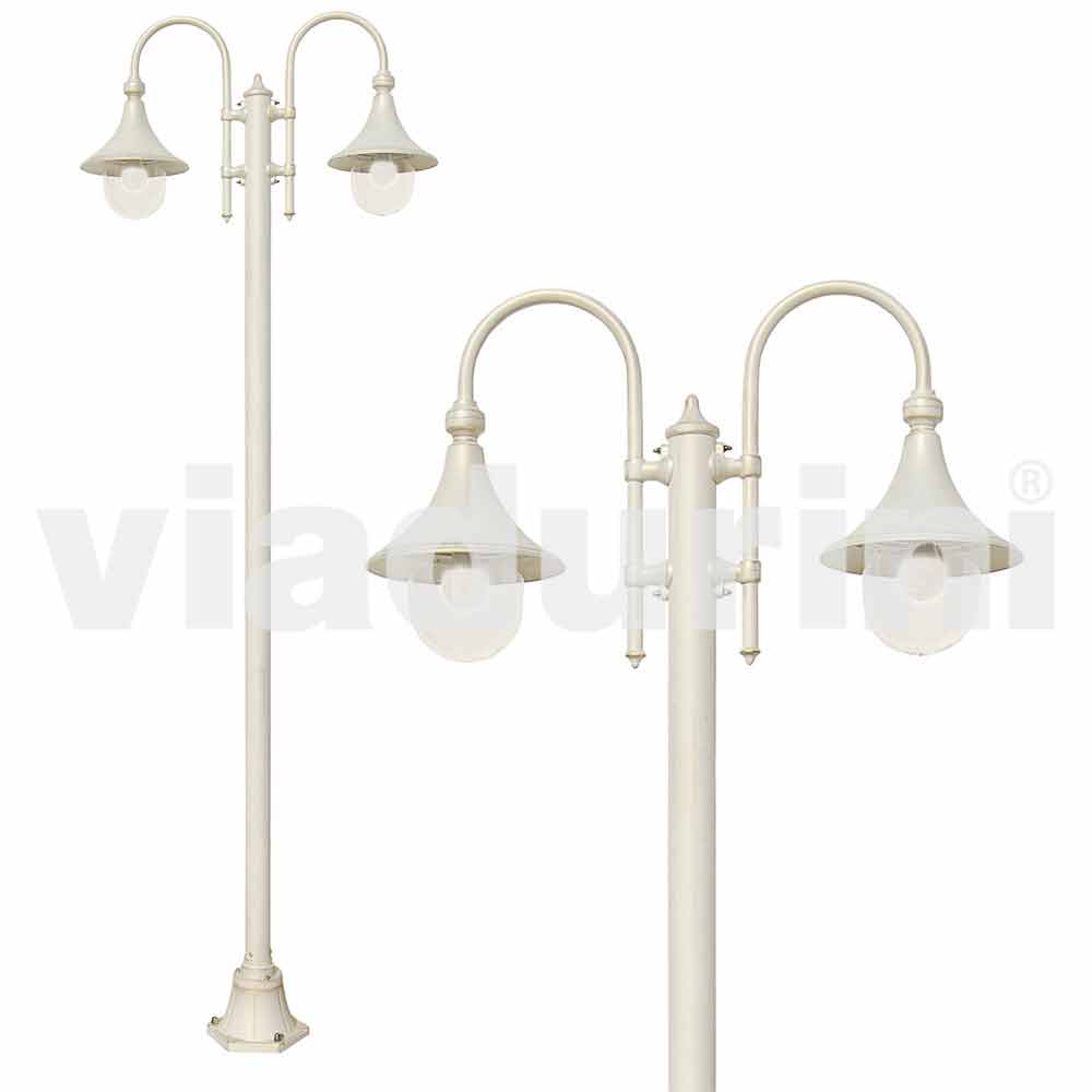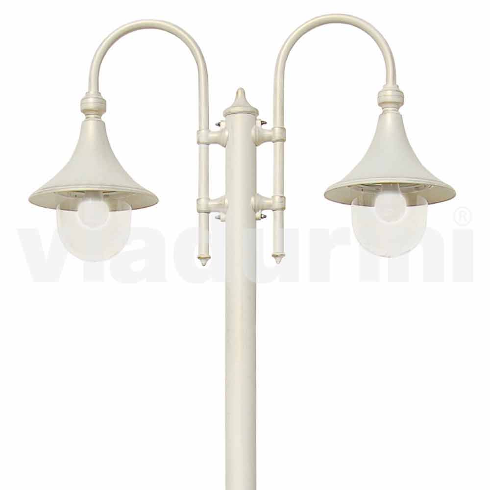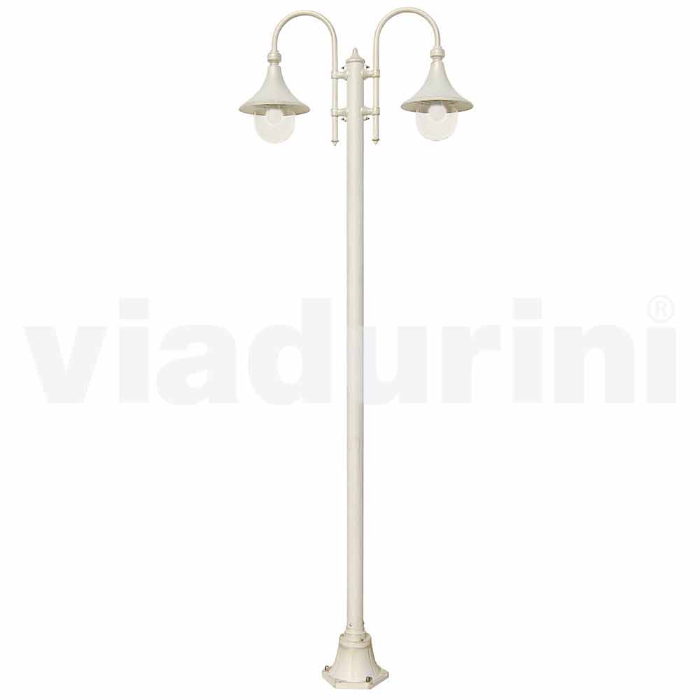 Zweiflammige Gartenlampe aus weißem Aluminium, hergestellt in Italien, Anusca