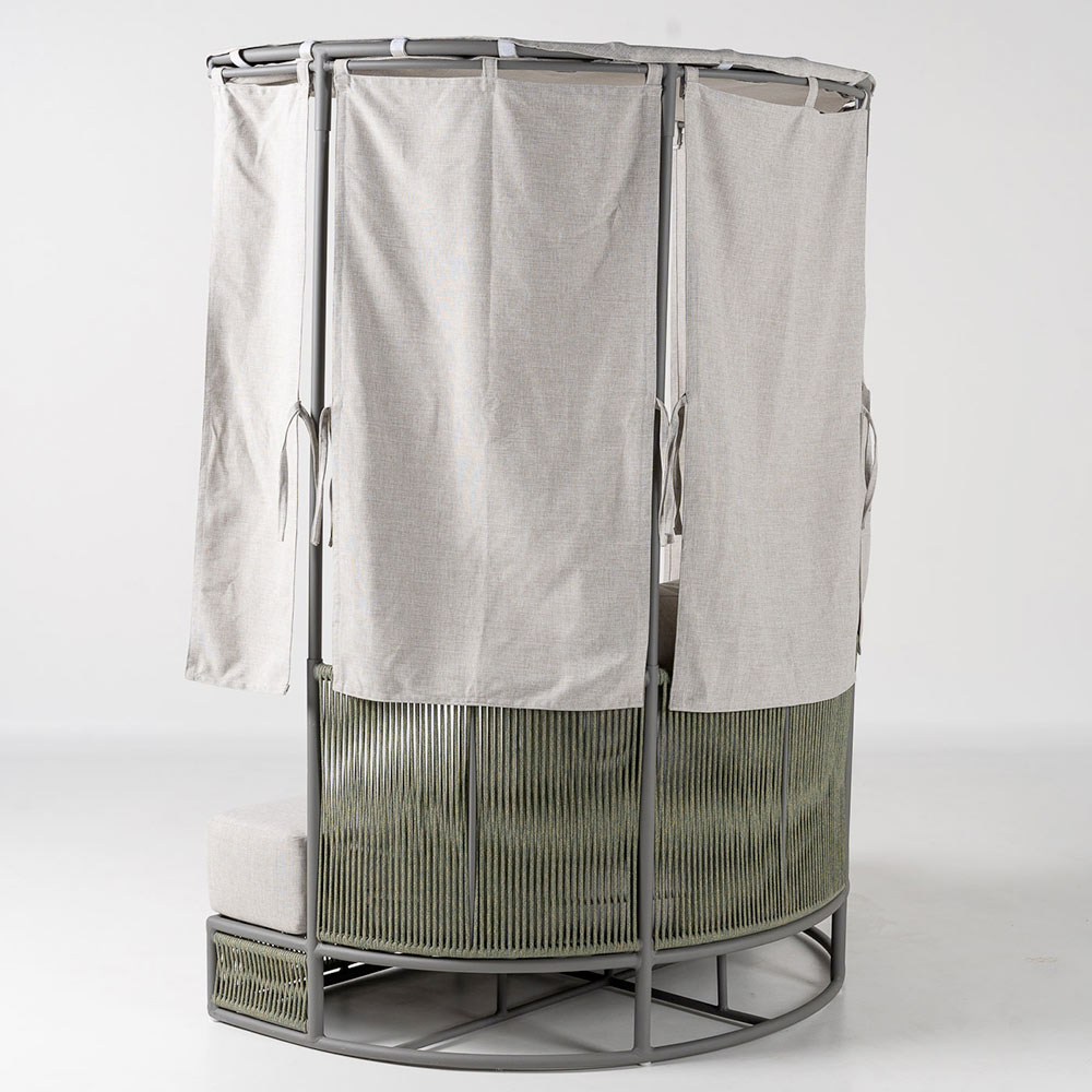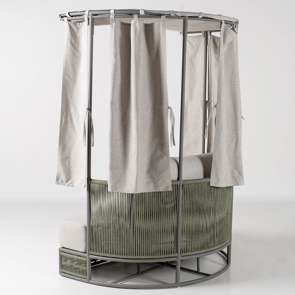 Dieses Tagesbett eignet sich perfekt für Terrassen, Gärten, Hotels oder Loungebereiche und lädt dazu ein, die Natur stilvoll zu genießen: ein Raum, der dem Wohlbefinden, der Entspannung und der Freude am Aufenthalt im Freien gewidmet ist.