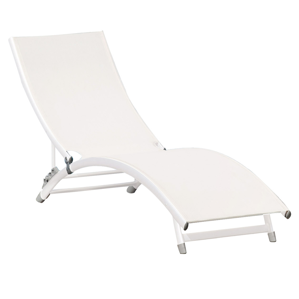 Outdoor-Chaiselongue mit Aluminiumstruktur und Textilene-Sitz.
