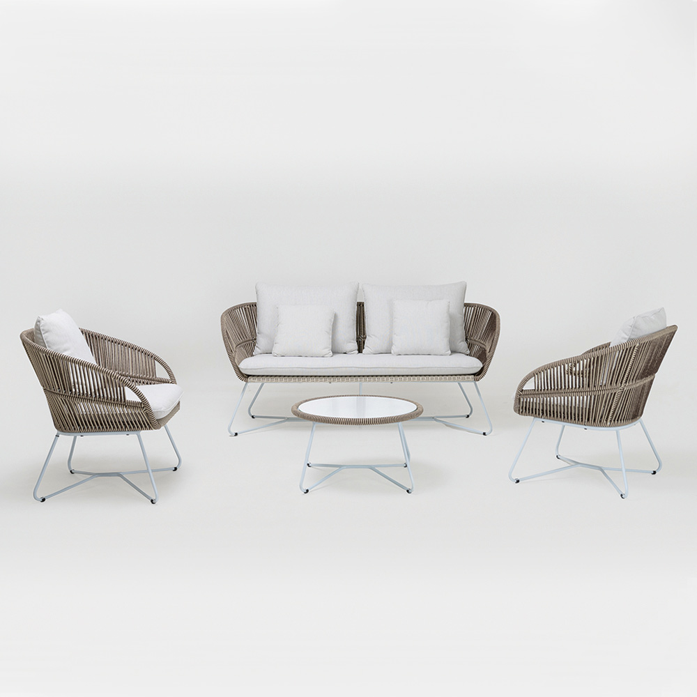 Olefin/PP ROPE-Geflecht mit zweifarbigem Perlweiß- und Cappuccino-Finish und Sitz- und Rückenkissen aus Outdoor-